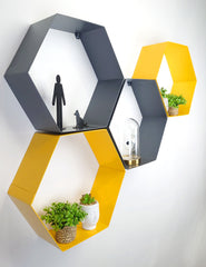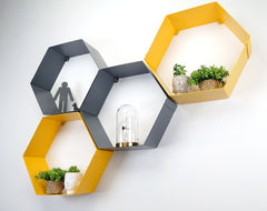 This set features 4 of the hexagonal wall mount shelves. You can choose which colour combination you want from the options. If you are in need of a custom colour, please let us know in your order notes. All 4 can be different colours if requested.