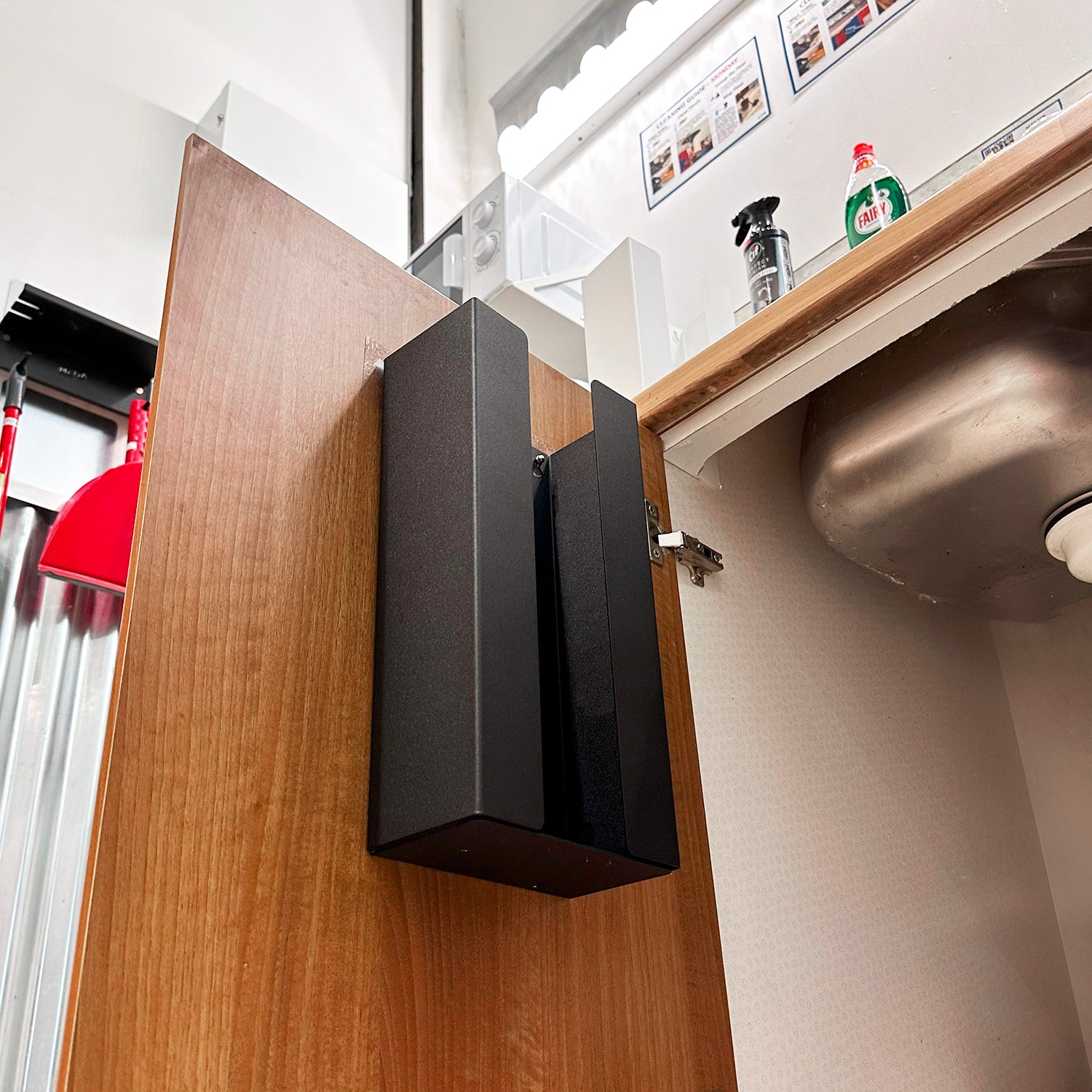 By installing this on the inside of a cupboard door, or maybe near your front door, you will hopefully never forget a bag again. Install it somewhere convenient that you will be sure to check before you leave the house. Once you have used your bags, just throw them back into the holder. The dispenser can hold multiple shopping bags including Bags for Life at any one time. The open part at the front of the product allows for easy retrieval and placement.
