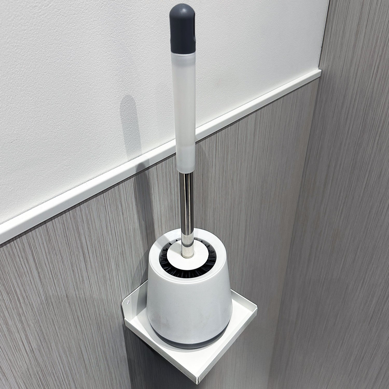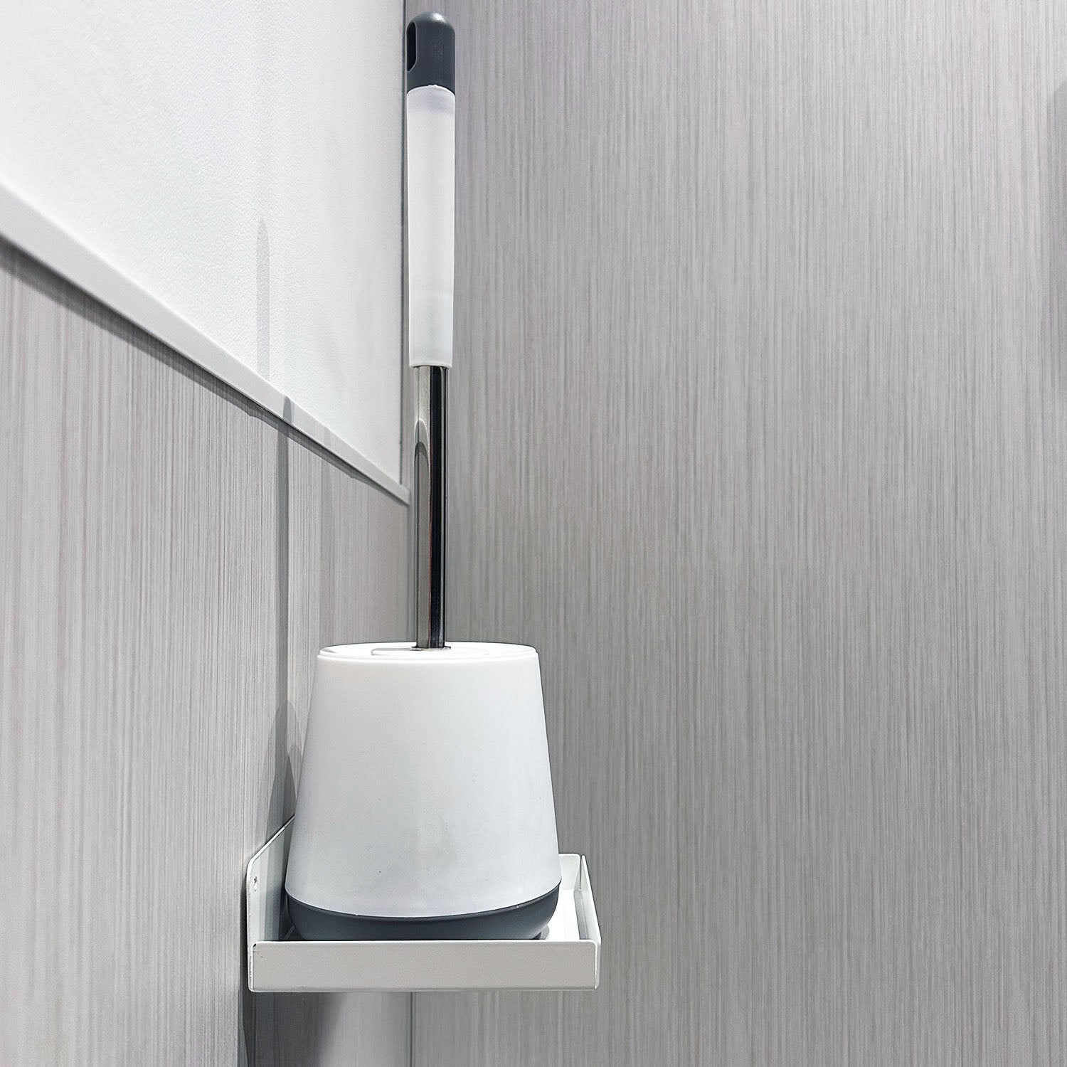 This holder shelf is suitable for toilet brushes up to 130mm x 130mm. The design includes a raised lip around the edge to ensure the brush stays securely in place, even with regular use.