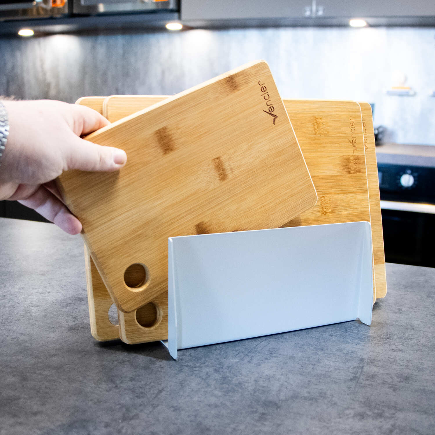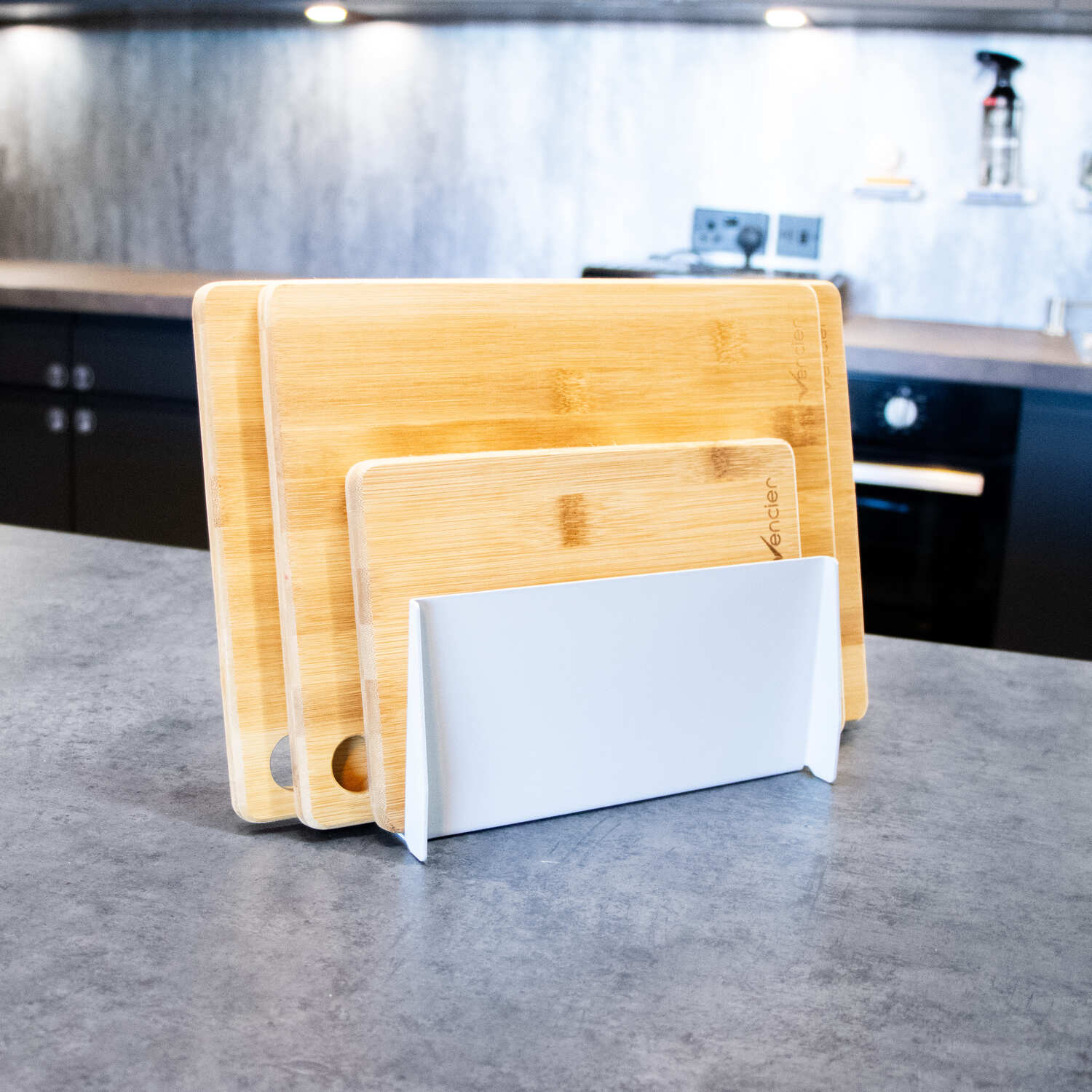 No assembly or installation is required. Simply place the holder on your kitchen counter or worktop and slide your chopping boards into place. It’s ideal for use beside the sink, near the hob, or tucked against a splashback. The angled side supports offer great balance and support without taking up too much space.