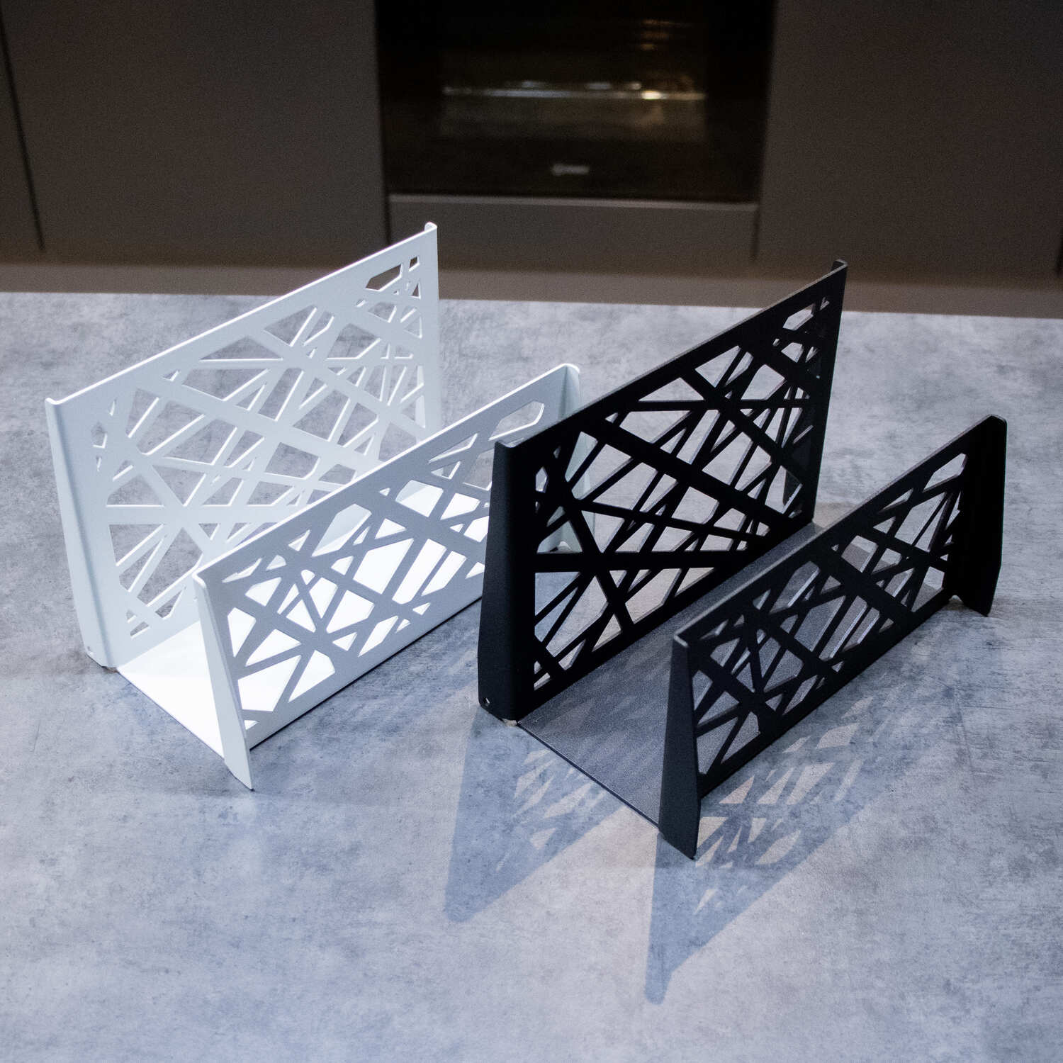 Made from strong British steel, each holder is powder-coated to provide resistance to corrosion and water. Easy to wipe clean and built to last, these stands offer a hygienic and practical way to manage your kitchen space.