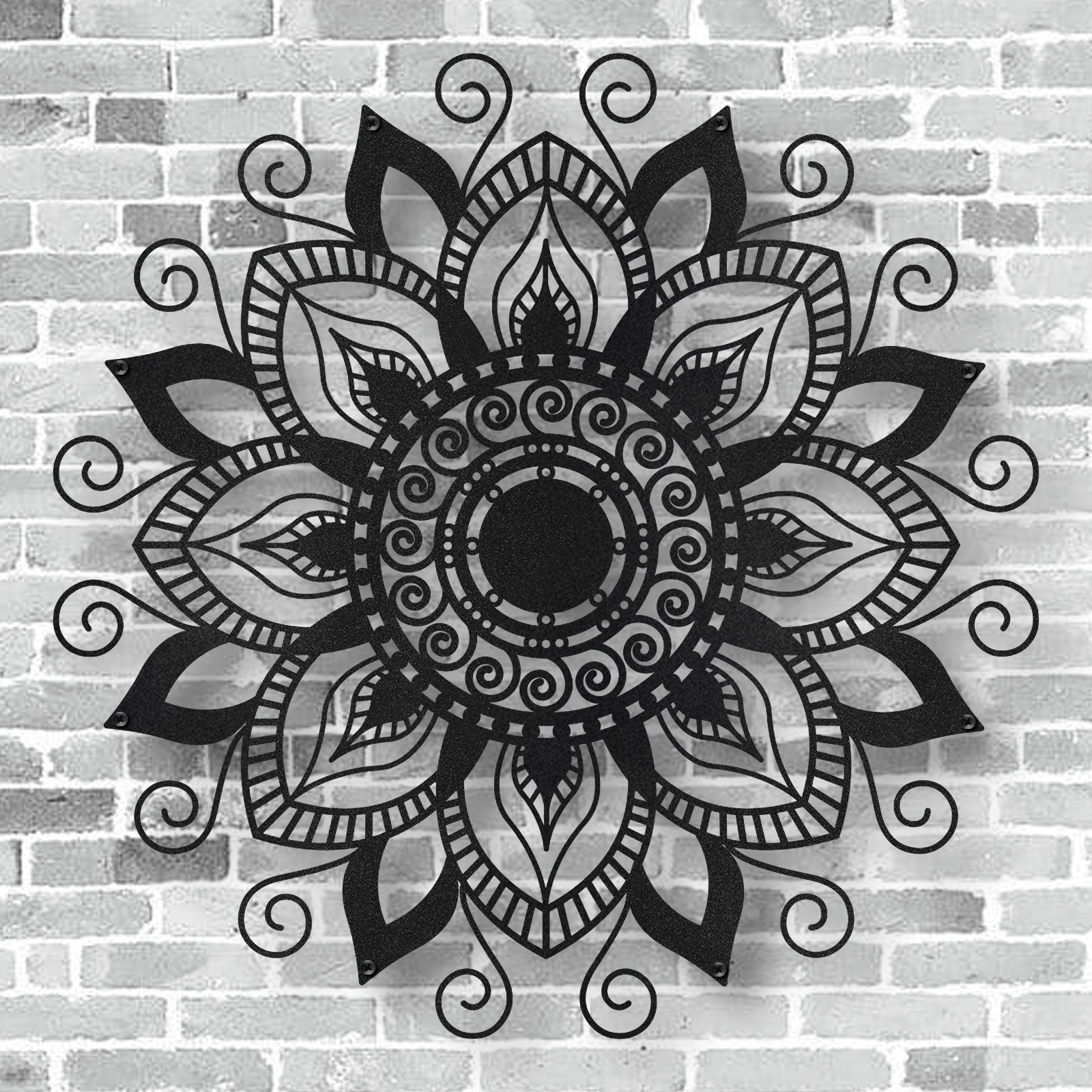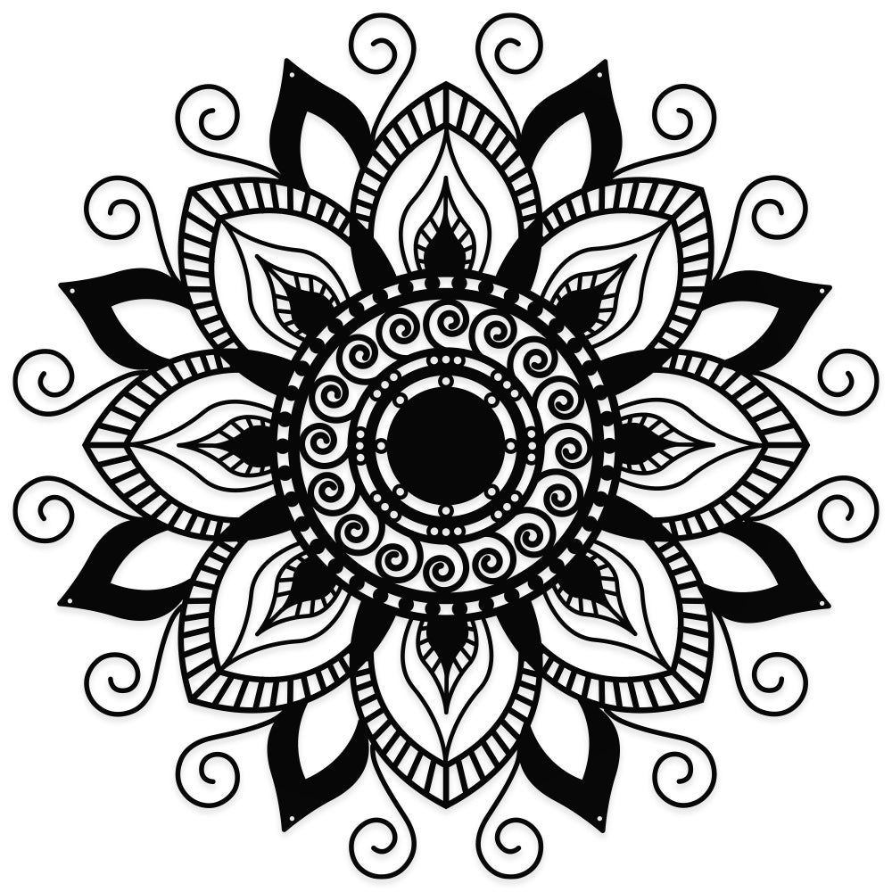 Each Peaceful Zen Mandala wall art is crafted from British steel. This guarantees strength and durability. It is then Powder-coated in a textured black finish. This gives it a striking appearance that will captivate people when the light catches the textures.