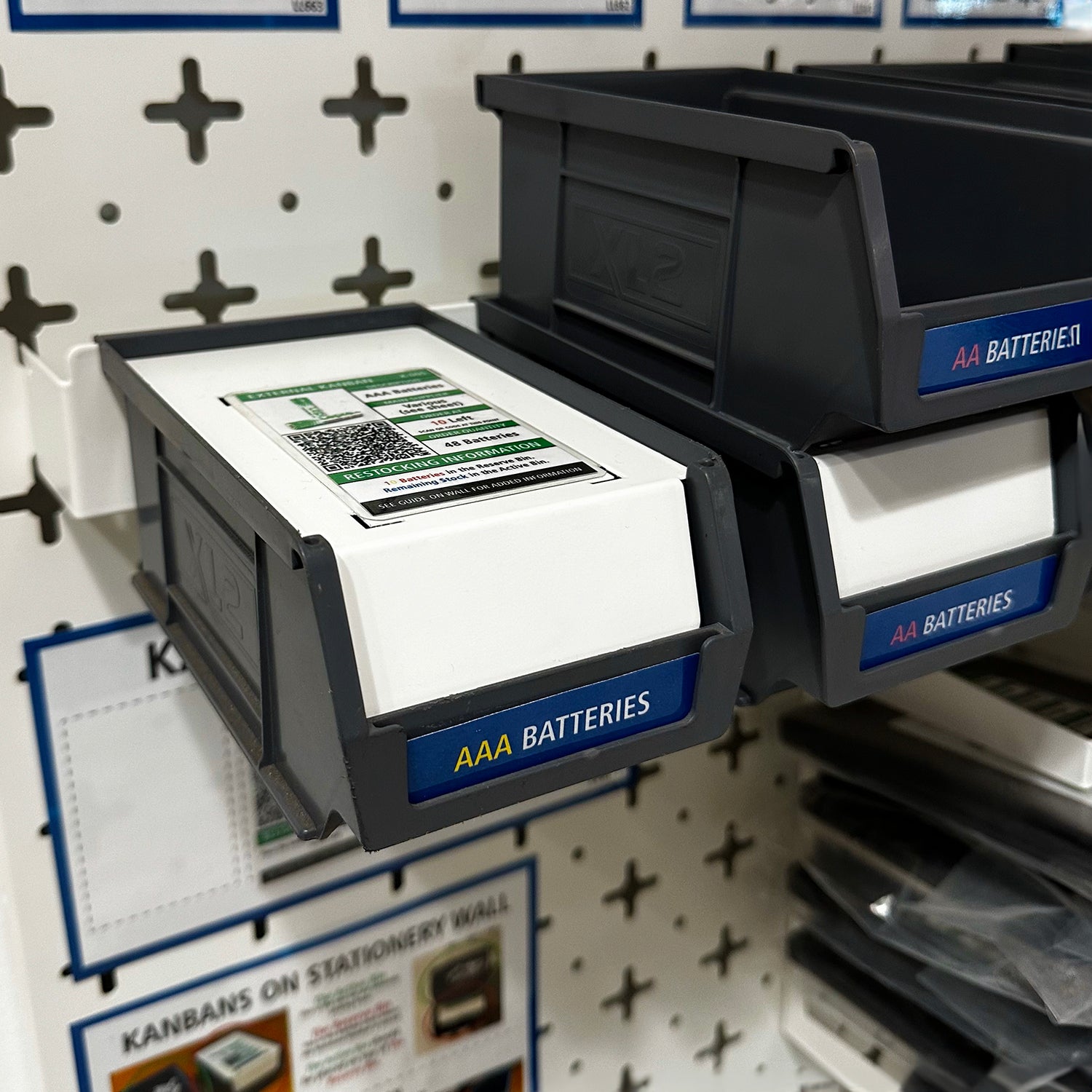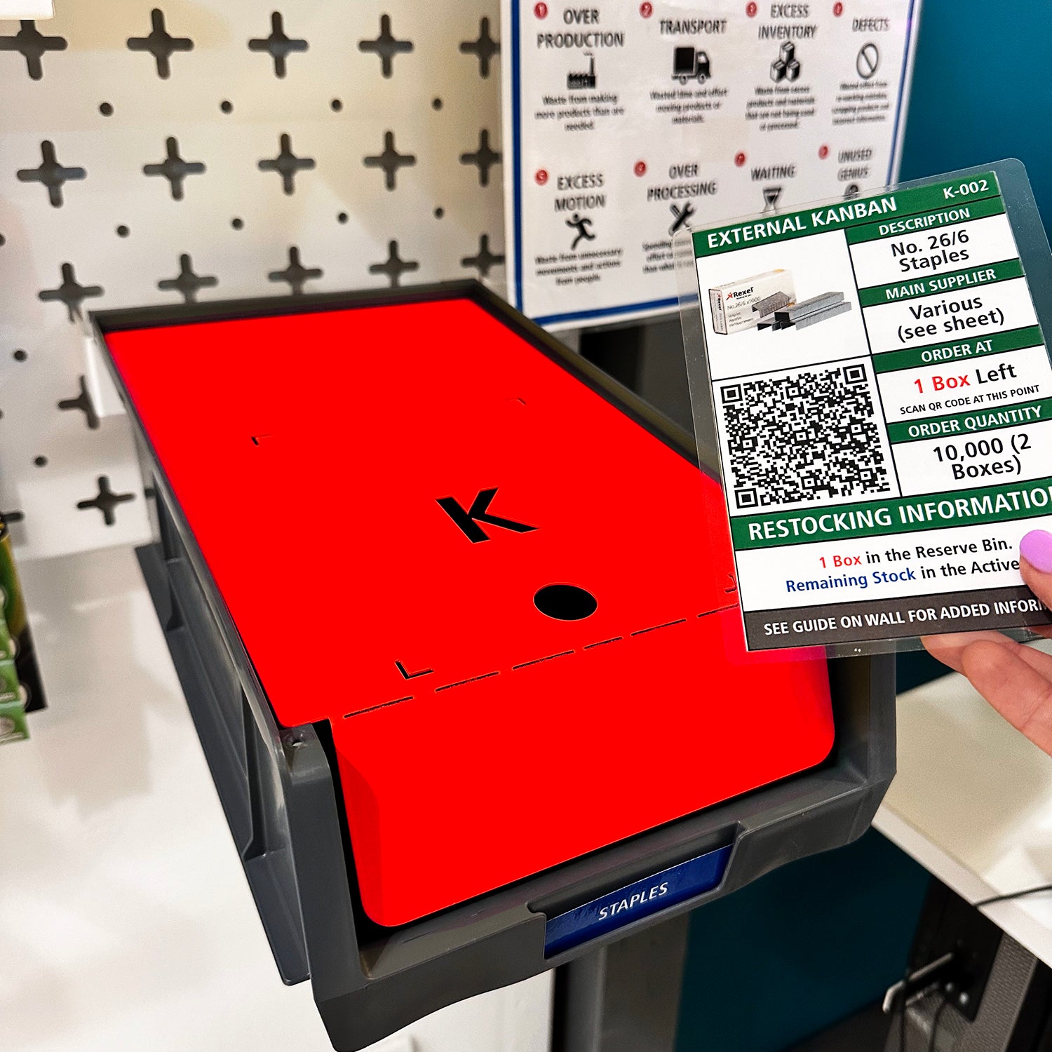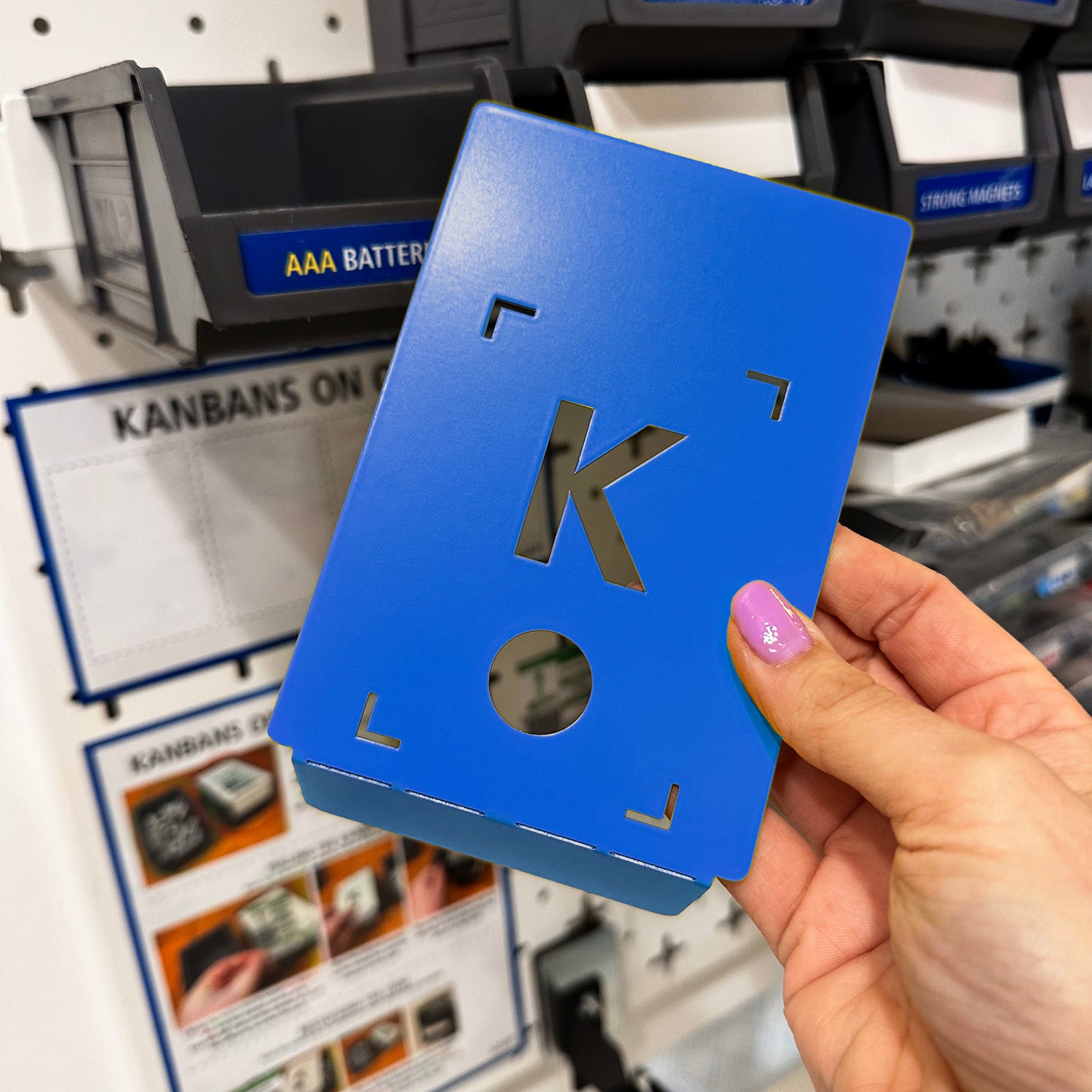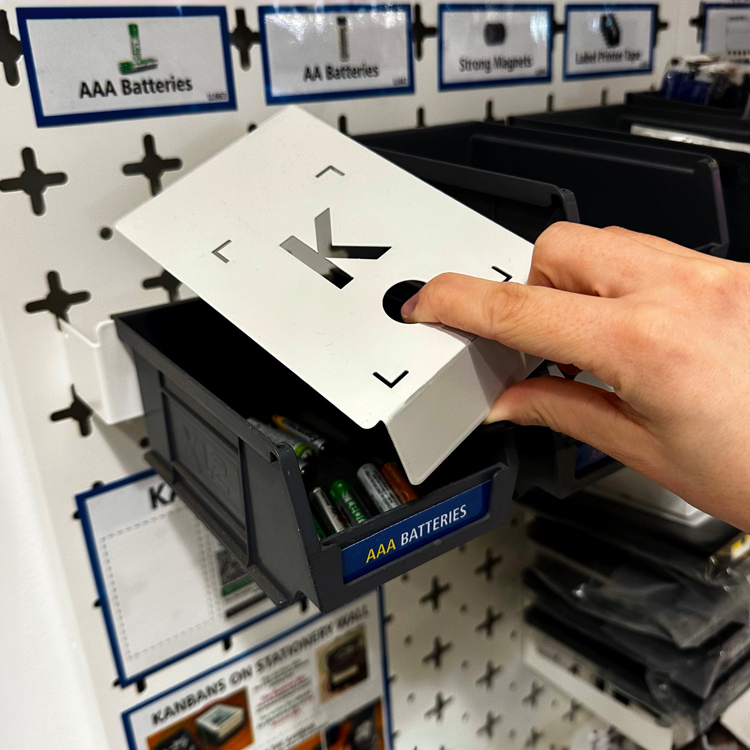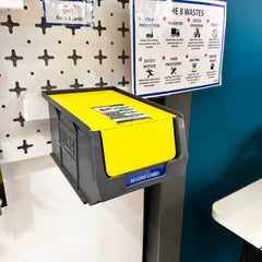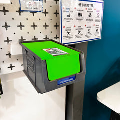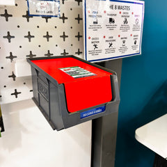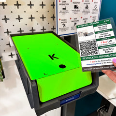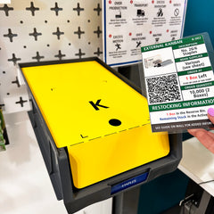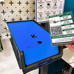 These products offer a physical barrier to stop you from taking those final items. It sits on top of a second box and keeps the reserve stock protected. If you are a company that uses physical Kanban cards, it has a slot marked out where to keep it! In fact, the card must be removed in order to easily lift the barrier. This is one of the easiest ways of establishing a 2-Bin System.