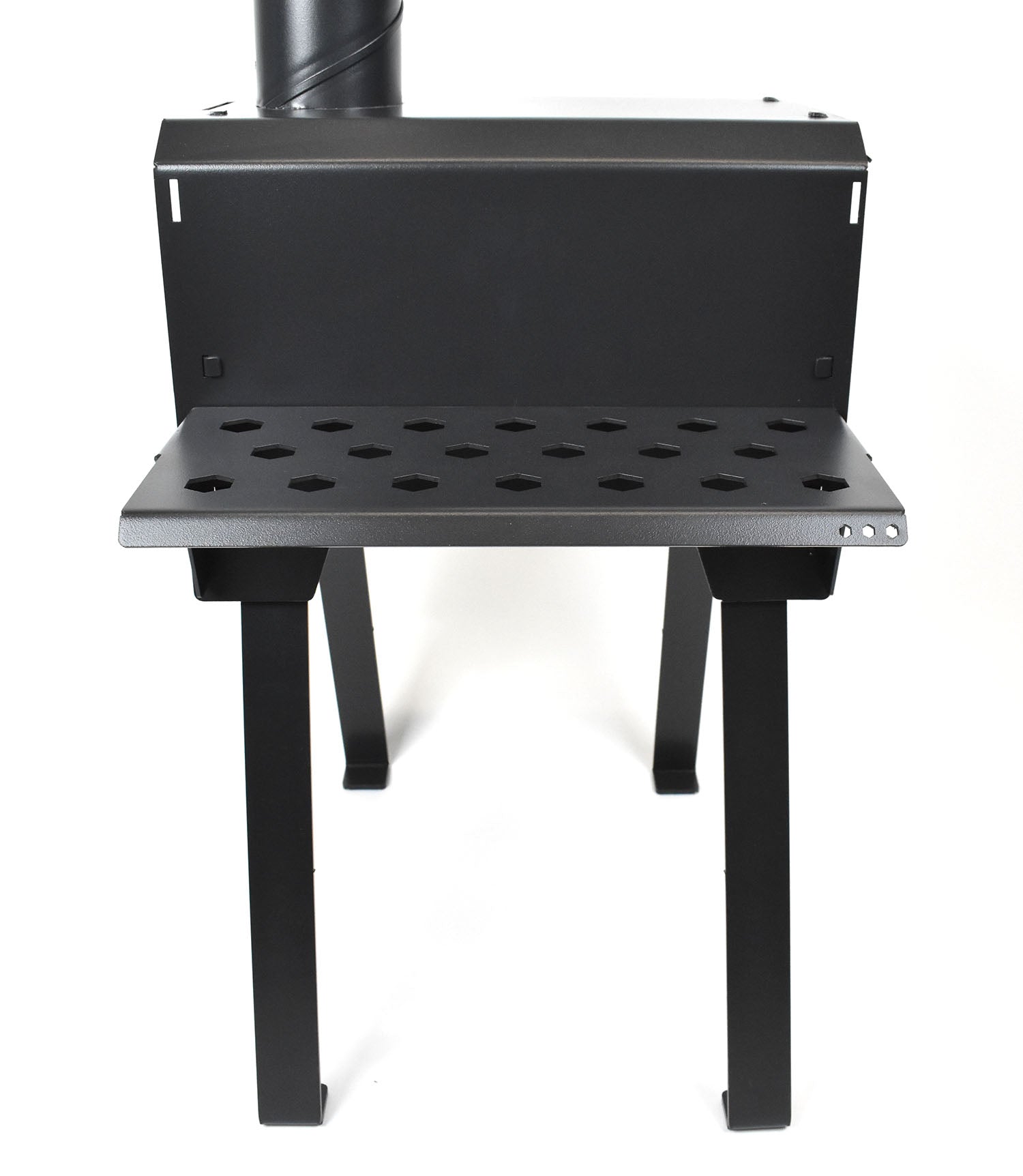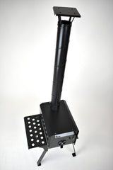 The stove folds down neatly thanks to its removable legs and chimney, taking up minimal space when not in use. You’ll receive eight pieces in total, including the stove chamber, chimney, four legs, side shelf, and an ash tray – all simple to assemble. A fold-down shelf on the side provides a helpful surface for food prep, utensil storage or drying off damp gear next to the heat source. There's even an optional stainless steel water tank you can purchase separately for making tea or boiling water.
