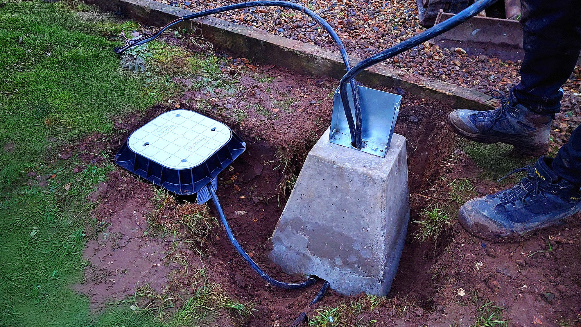 The concrete base block is suitable for a range of tasks. It can be a great option for installing Post Bases for use in Framola Pergolas or FenceEasy fences or even for decking. Its' original purpose was for EV Charging ports, and it can be used for these too! The optional 40mm hole at the centre allows for cables to be fed through and into the ground safely and securely. It can be used for installing bollards, lamp posts, garden light and much, much more.