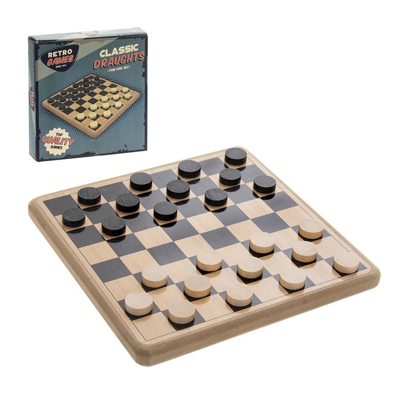 Enjoy hours of family fun with this classic Retro Games Draughts Set. Crafted from high-quality wood, this set includes everything you need to play the timeless game of draughts, also known as checkers.