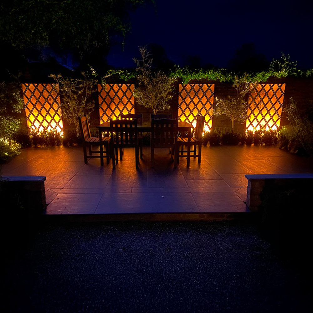 For an extra touch of elegance, this wall mount trellis comes with optional built-in illumination. The soft, warm lights create a stunning evening ambiance, making the trellis a focal point in your garden, perfect for outdoor dining, entertaining, or simply enjoying the peace of a beautifully lit garden at night.