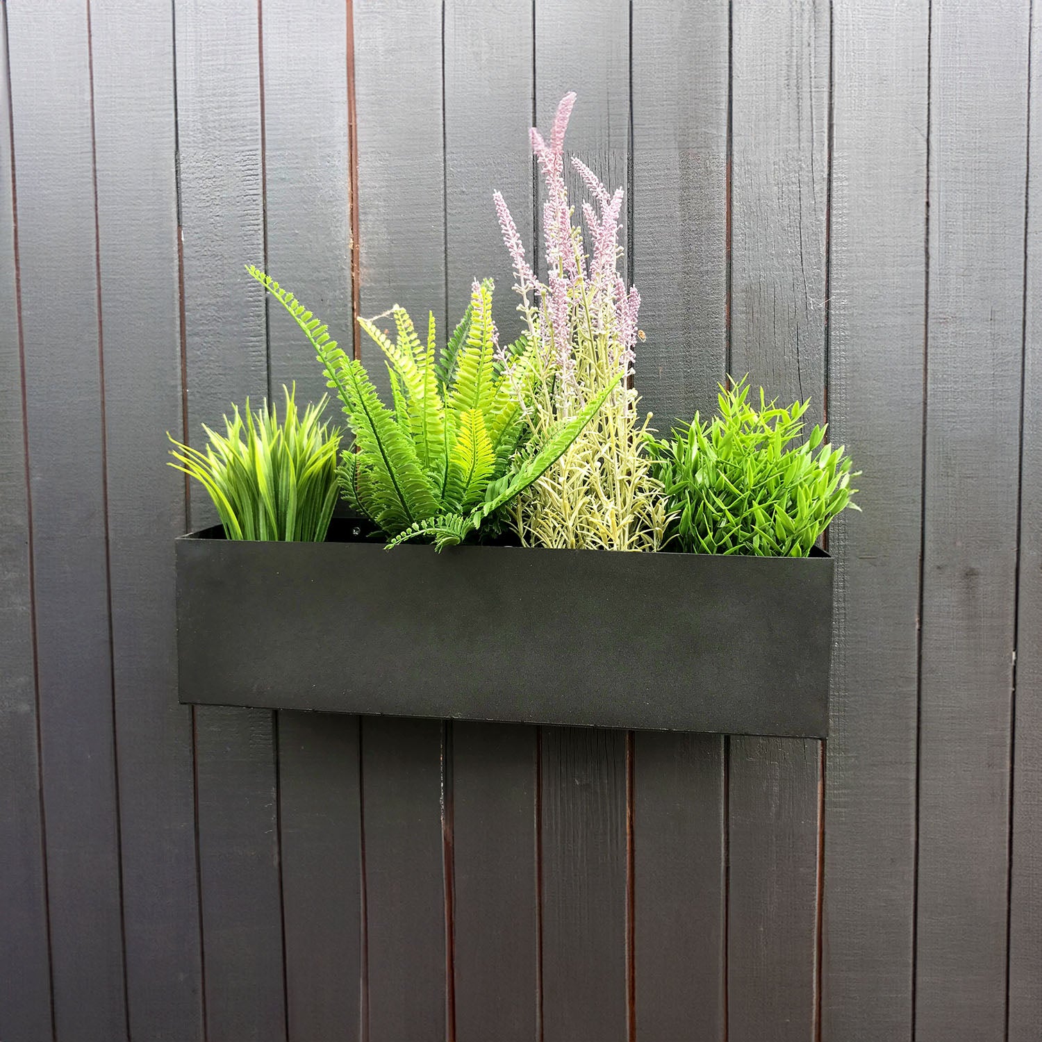 Installation is simple. The planter features two rear keyholes, making it easy to mount securely in minutes. Just mark the holes, screw into your wall, and slot the planter into place. Once installed, you can fill the trough with soil, stones or decorative gravel and arrange your choice of plants or ornaments.