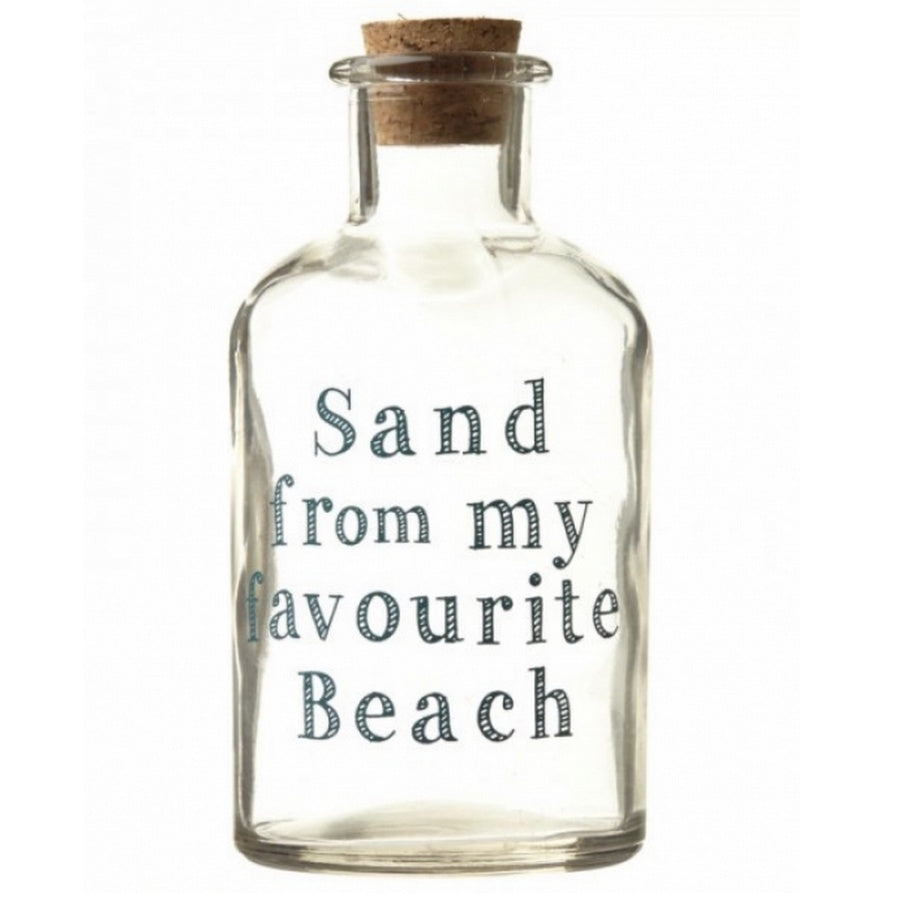 Bring a piece of your favourite beach home with this charming "Sand From My Favourite Beach" Glass Jar. Perfect for beach lovers, this chic storage jar bottle is designed for decorative use in the home. With its simple and elegant design, the bottle features a cork stopper and the sentimental phrase, "Sand From My Favourite Beach" written on the front, adding a personal touch to any space.