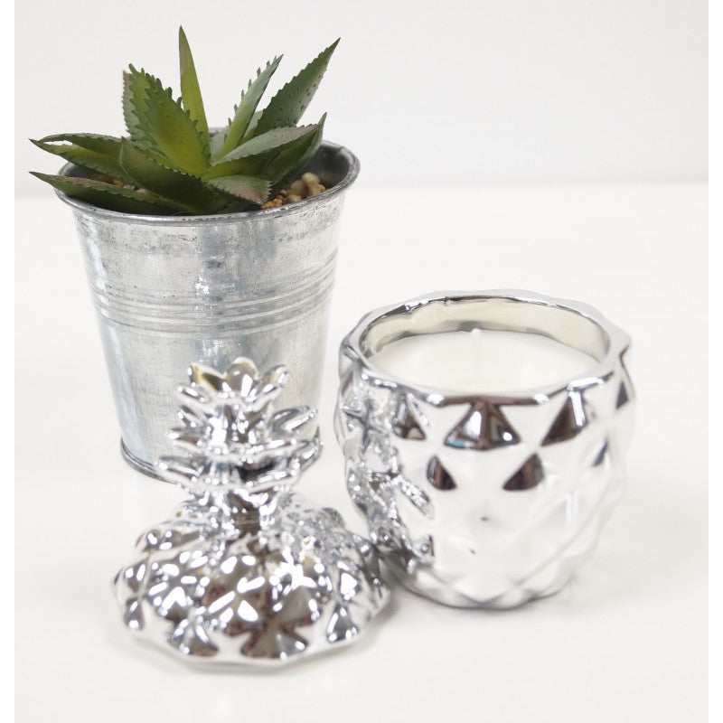 A funky modern home decorative piece, this silver pineapple candle is sure to catch the eyes of any guests! Gift as a fun and unusual alternative to traditional candles for a loved one or as a treat for your own indoor space!