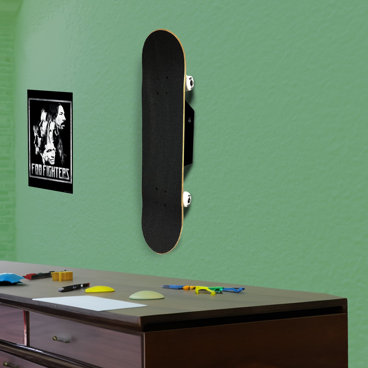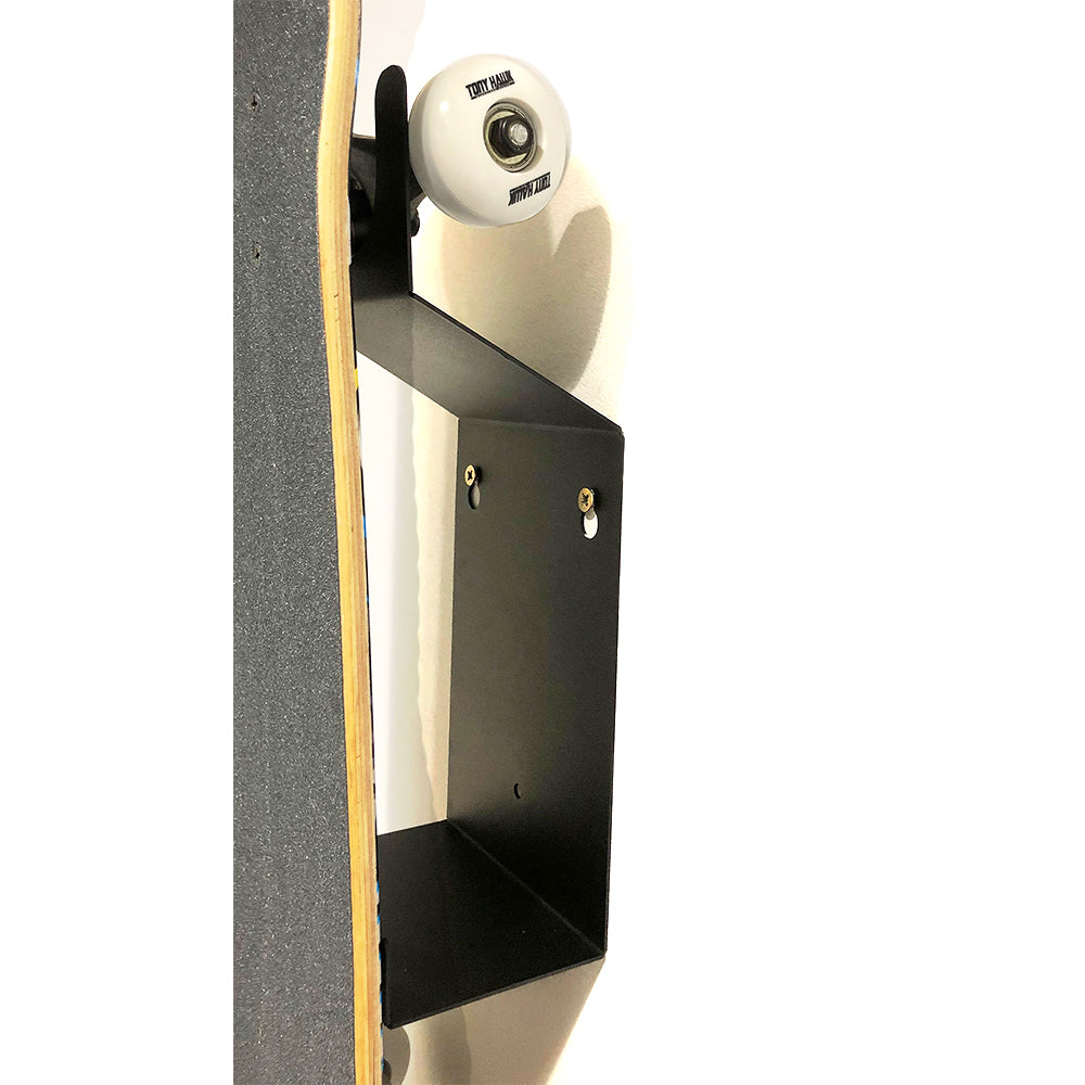 Store & display your favourite skateboard using this Wall Mount Display Bracket from BlackSteel. You will receive a single bracket which can be easily affixed to a wall using the key hole hooks provided. Once securely installed, you just need to slot your board over it, ensuring the trucks are securely slotted onto the two prongs at the top of the bracket. This design will ensure no damage to your board.