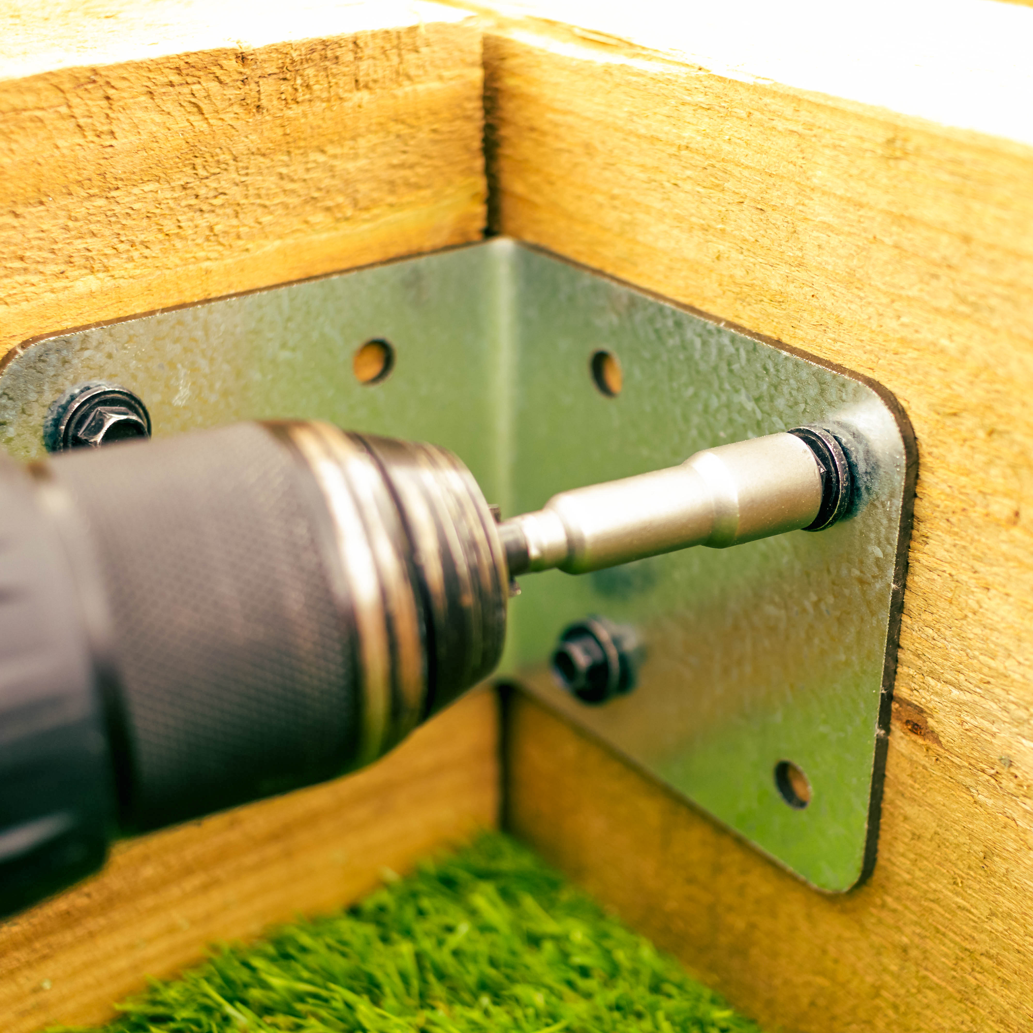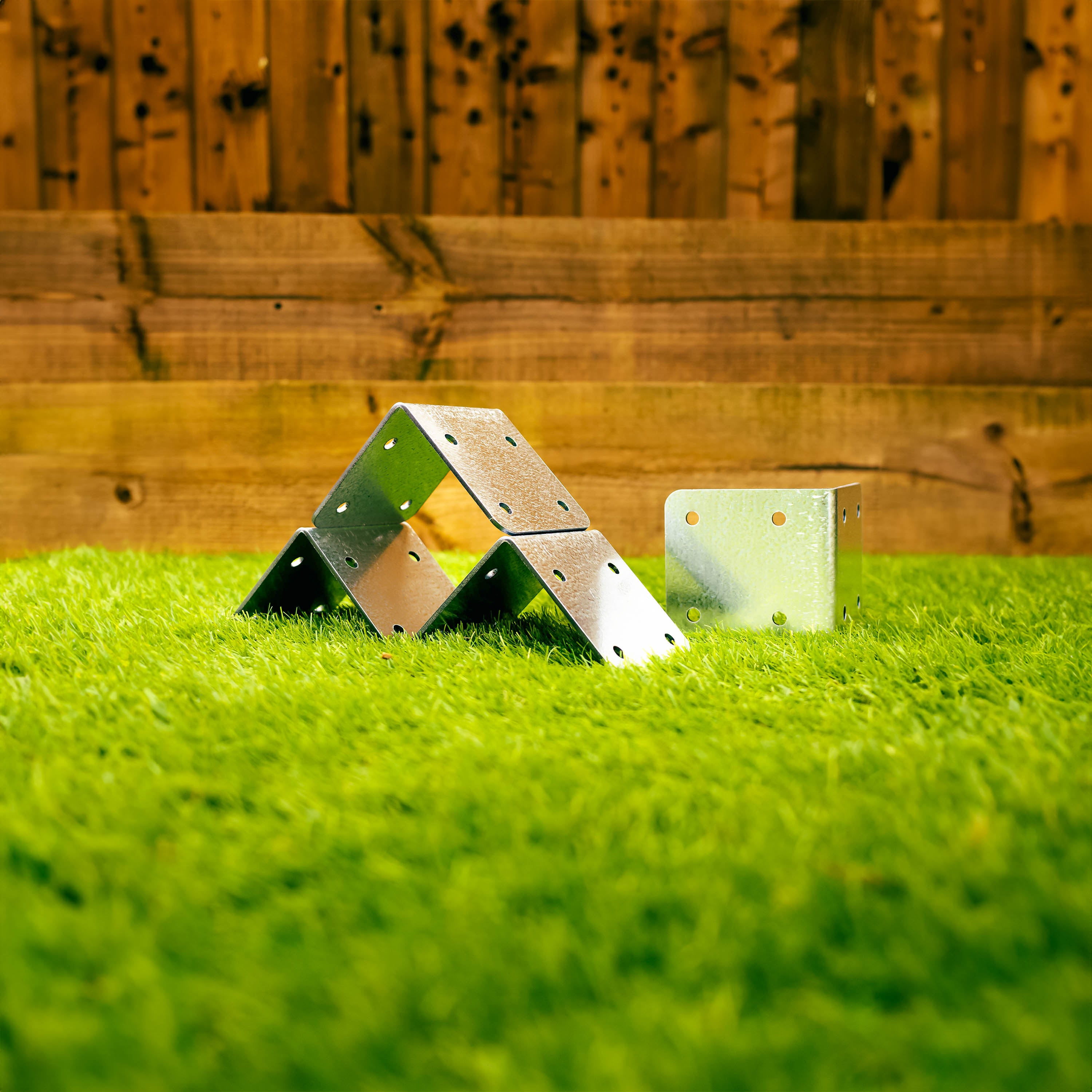 These simple corner brackets should be used to secure timbers at 90° joins. Simply press the sleepers together, and then use the bracket to secure them together on the internal corners. The bracket features 8 holes, 7.5mm diameter, meaning 4 screws can be used on each piece of timber for an extra-secure installation.