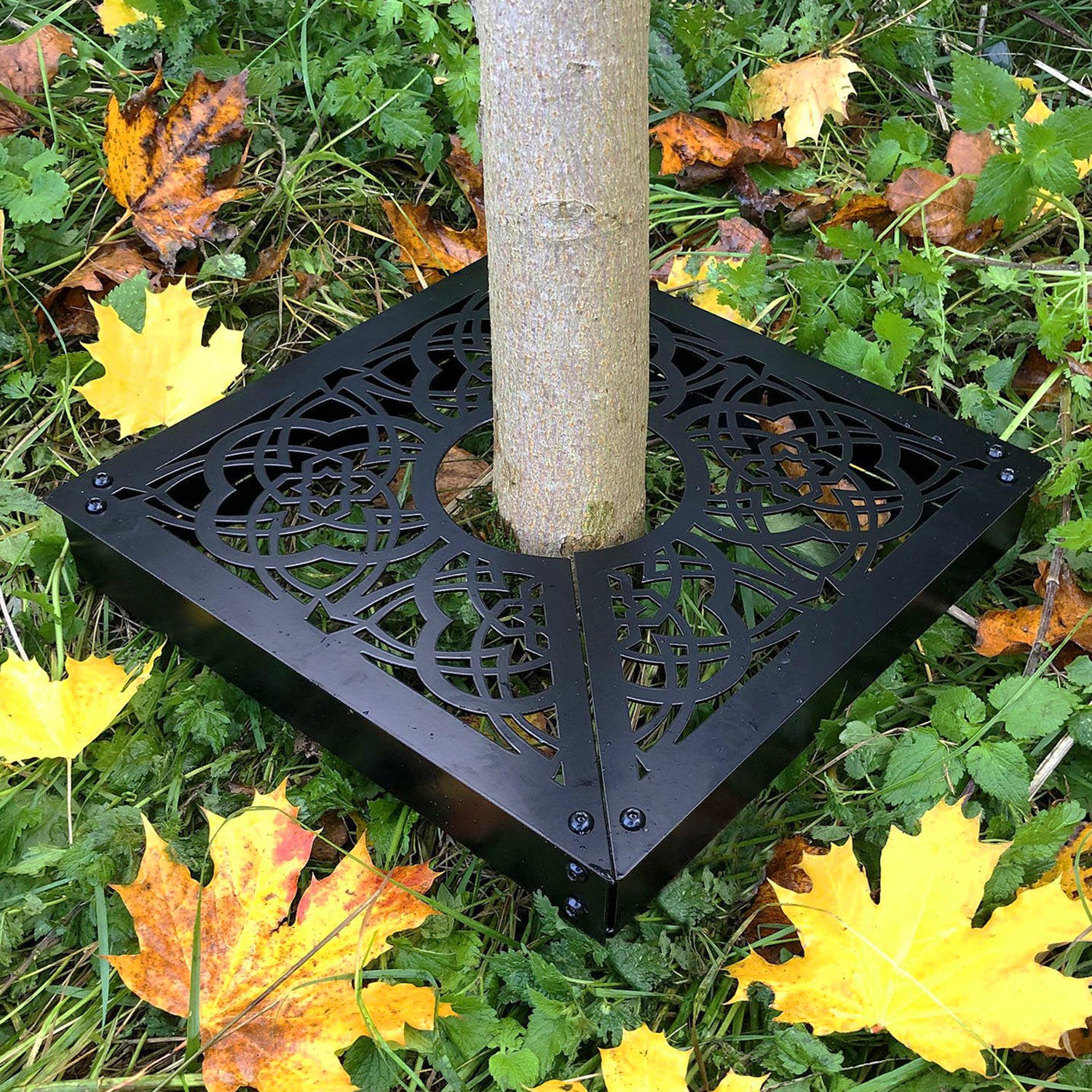 Add a touch of elegance and sophistication to your garden with a Bellamy Square-Base Steel Tree Grille. This beautifully designed grille is perfect for placing at the foot of any tree or large plant, offering both aesthetic appeal and functionality. The intricate pattern, laser cut into high-quality British Steel, provides a decorative flourish that will enhance the beauty of your outdoor space.