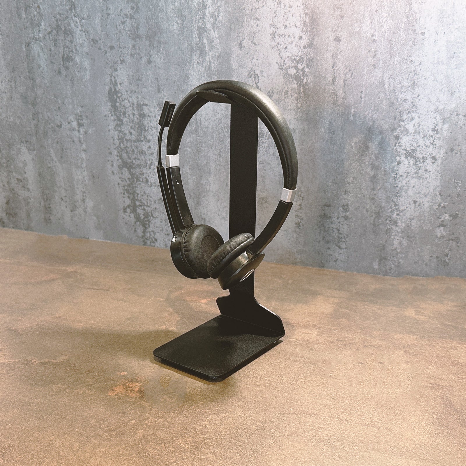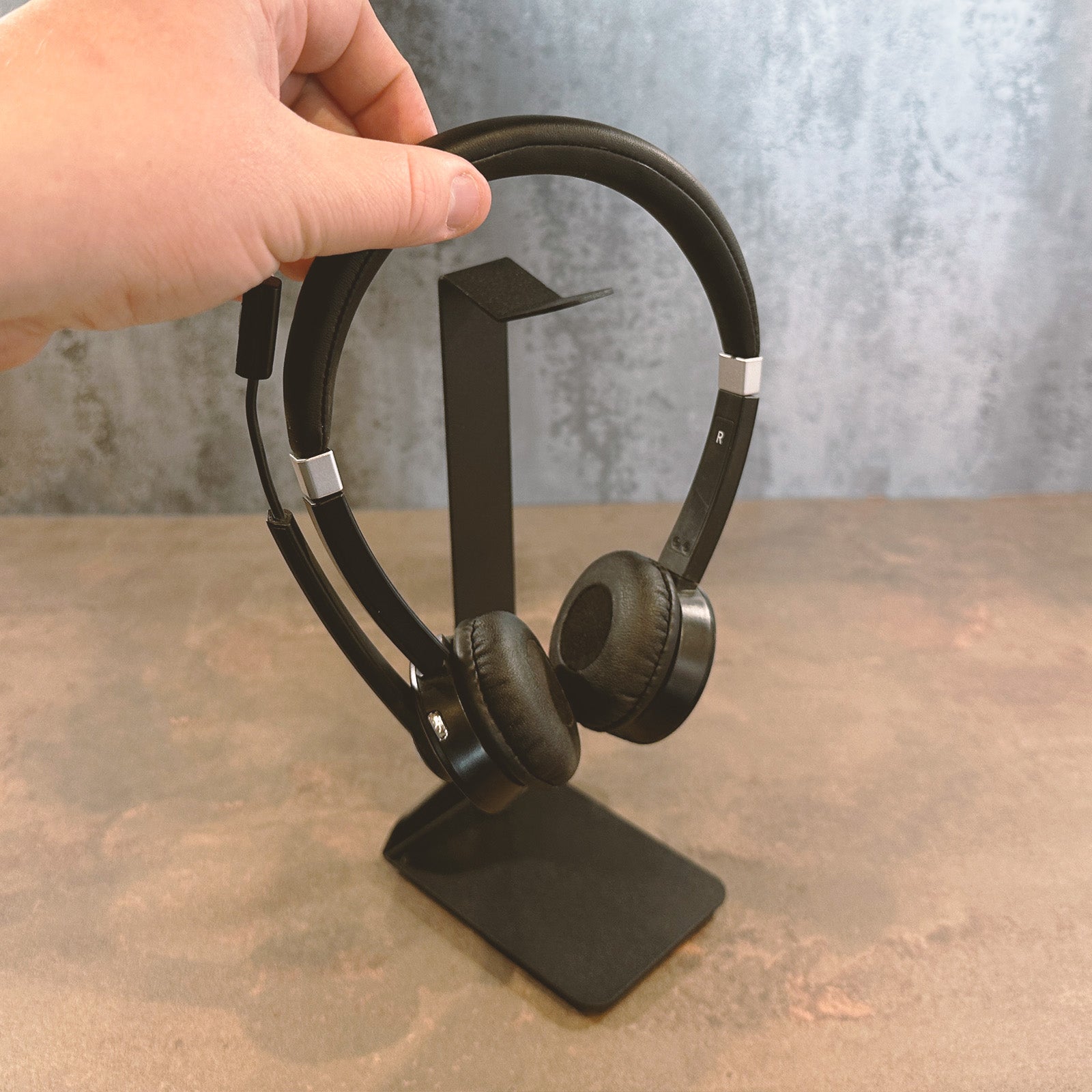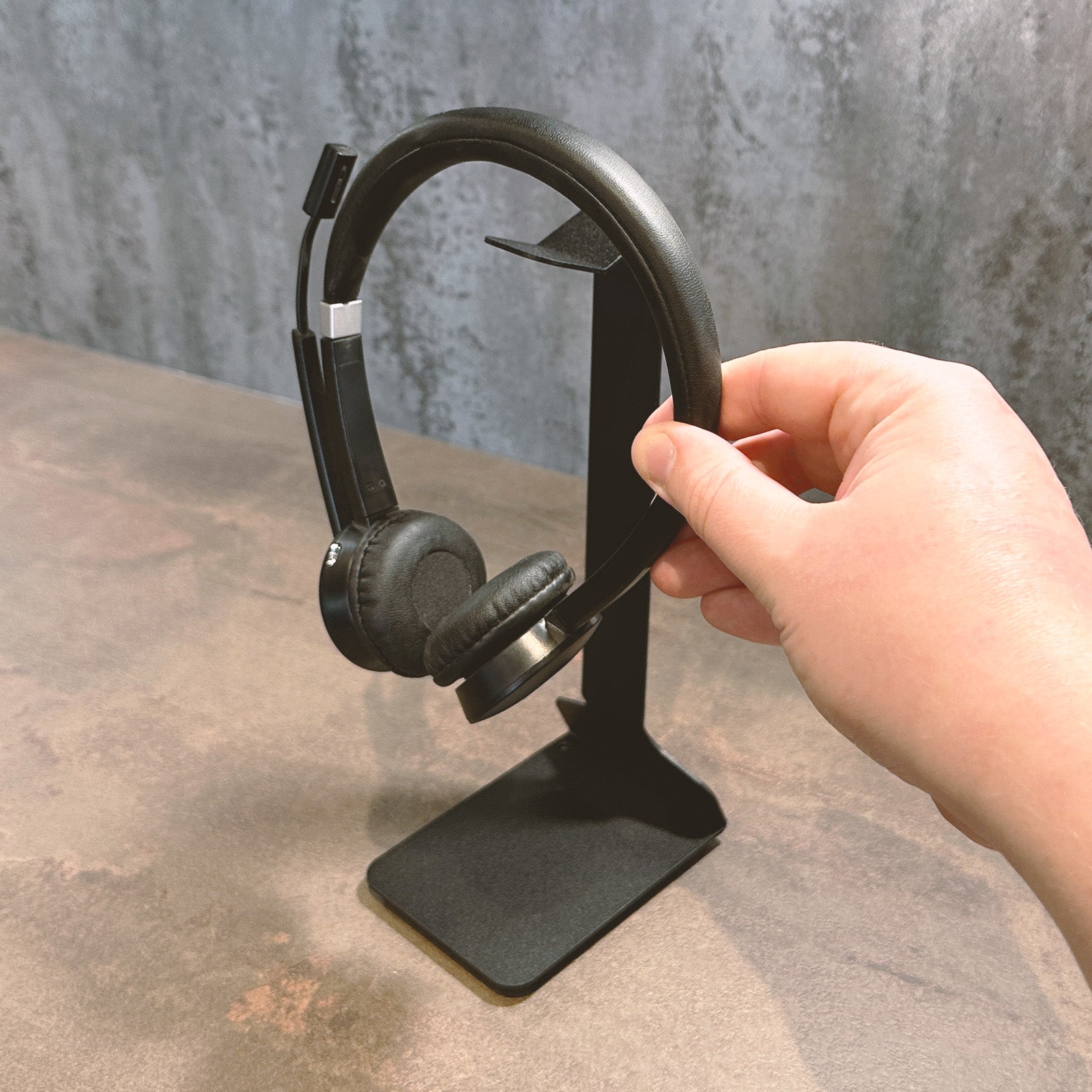 The Desktop Headphones Stand features a smooth, folded top section designed to cradle your headphones securely and without strain. It keeps the headband from bending while allowing you to lift your headphones quickly when needed. Designed to suit most headphone and headset shapes, it's ideal for offices, gaming setups, or creative studios.