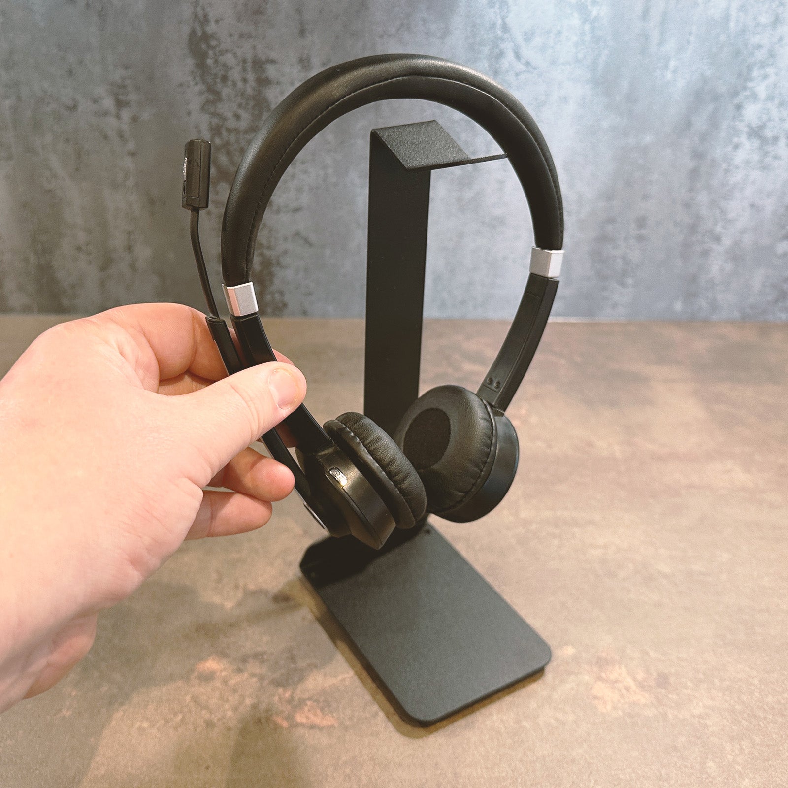 Made in the UK using strong but lightweight British steel, this stand is built to handle everyday use. A powder-coated finish in black or white gives it a clean, modern look while protecting it from marks and scratches. Four rubber feet on the base keep it firmly in place, preventing movement when you remove your headset.