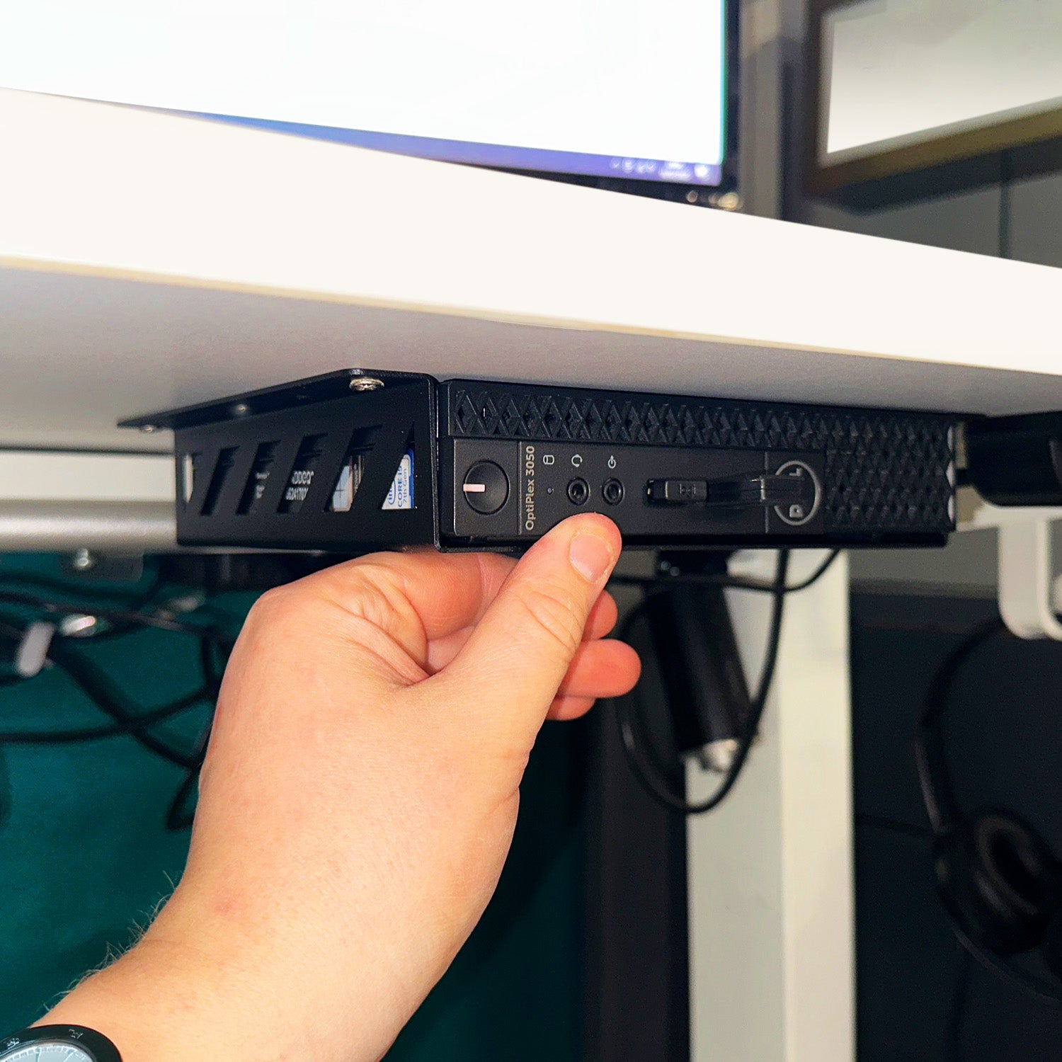 Designed to securely hold a Dell Optiplex 3050 Mini PC, this under-desk mount is the perfect solution for keeping your computer off the desktop and freeing up valuable workspace. Ideal for offices, home setups, and professional environments, this mount helps keep workstations tidy and organised.