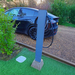 Built with heavy-duty British steel, the pedestal is robust and weather-resistant, ensuring long-lasting performance. Finished with a durable powder coat, the pole is available in three popular Tesla colour options - black, dark anthracite grey, or white - allowing you to match the aesthetic of your vehicle.