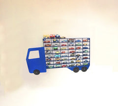 This wall mount storage unit is styled after a large truck and trailer. It makes a great addition to any bedroom or playroom. It provides a fun way for kids to store their toy cars neatly when they are not in play. It can also be great for kids to store their rare or collectible toy cars. The unit can store up to 96 standard-sized toy cars. This includes leading brands such as Hot Wheels, Micro Machines or Metal Machines. Each gap is 50mm by 100mm to allow for different sizes of cars.