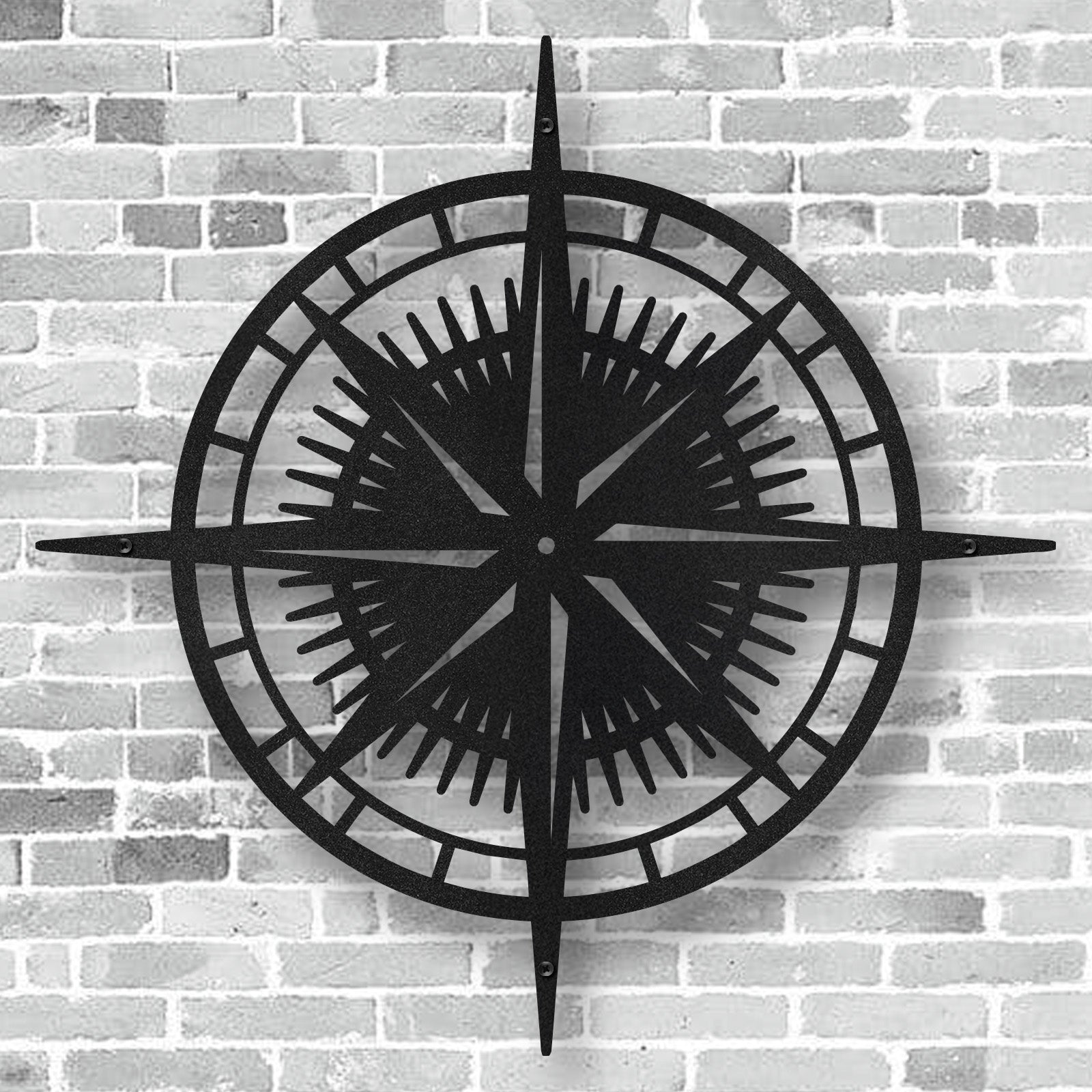 Each metal compass wall art is crafted from British steel. This guarantees strength and durability. It is then Powder-coated in a textured black finish. This gives it a striking appearance that will captivate people when the light catches the textures.