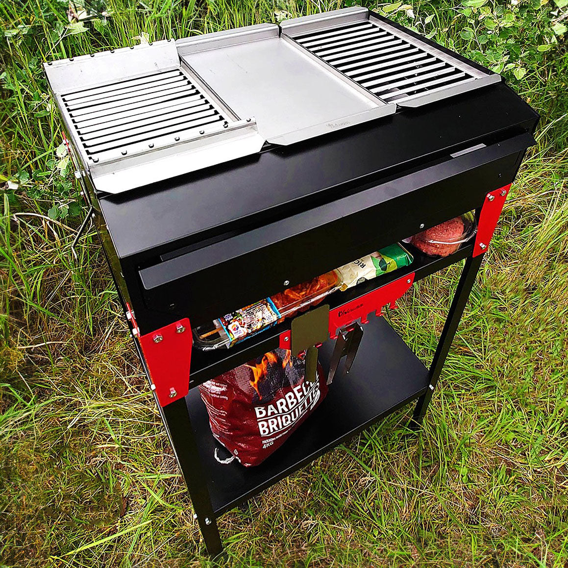 Looking to hold a big cookout or family BBQ? The Volcann Magna American Style BBQ Table can hold 3 of our Modular Grill Trays to allow you to cook a feast with ease. Mix and Match the trays on the top to suit your cooking style. Need more burgers? Add more Grill Trays. Need some veggie kebabs? Slot the Kebab Tray in. Stick them in the dishwasher when they're done or give them a good scrub.