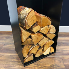 Each log store is made from heavy-duty British Steel. This ensures durability and strength, especially when holding an abundance of logs. Each one has a powder-coated finish. This not only looks great, but enhances the durability of the product. You can choose from our standard smooth black finish, or pick a custom colour.