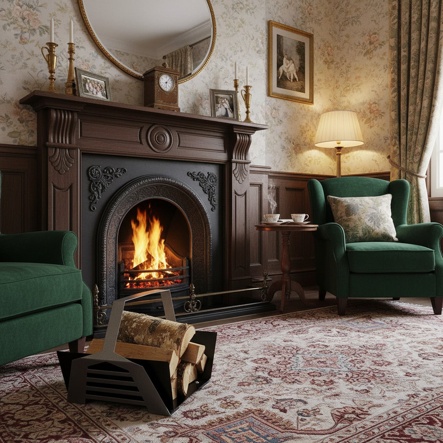 This log carrier is made from heavy-duty British Steel. This ensures durability and strength, especially when holding an abundance of logs. The smooth black powder-coated finish of the carrier's body not only enhances its aesthetic appeal but also makes it easy to wipe clean. The handle features a captivating silver-grey finish with a subtle hint of sparkle, catching the light in a truly captivating manner.