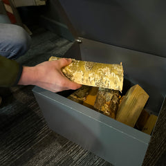 Designed and manufactured in the United Kingdom, this kindling box is produced at our premises in Norfolk, ensuring premium quality and craftsmanship.