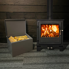 The Volcann Kindling Box is a practical and stylish solution for storing kindling and logs, whether placed next to your fireplace, stove, or outside in the garden. This robust storage box is designed to hold enough kindling or logs for a weekend of warmth during colder months, ensuring you have dry wood readily available.