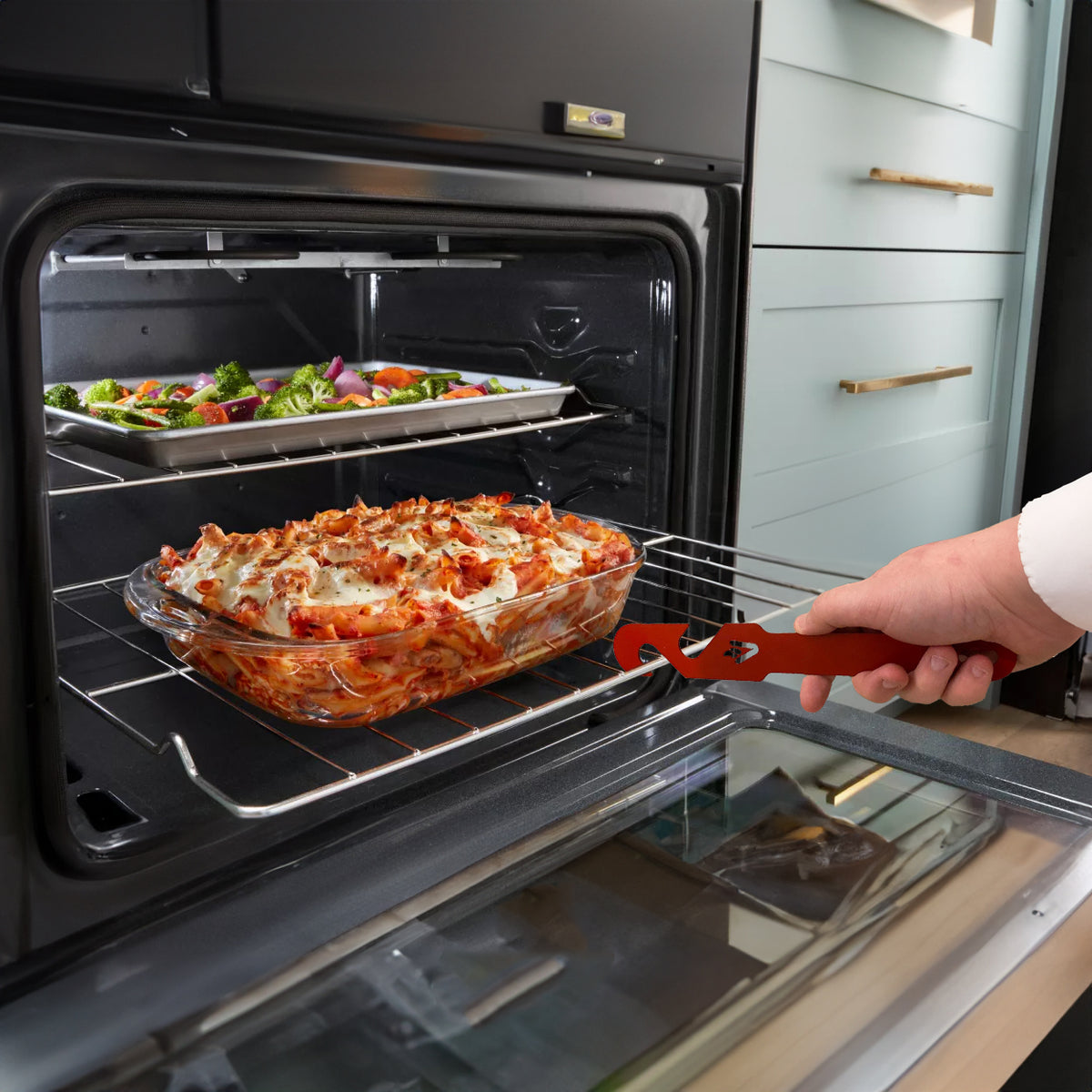 This Oven Rack Puller is a must-have for your kitchen. Don't waste time putting on oven gloves to check the food!
