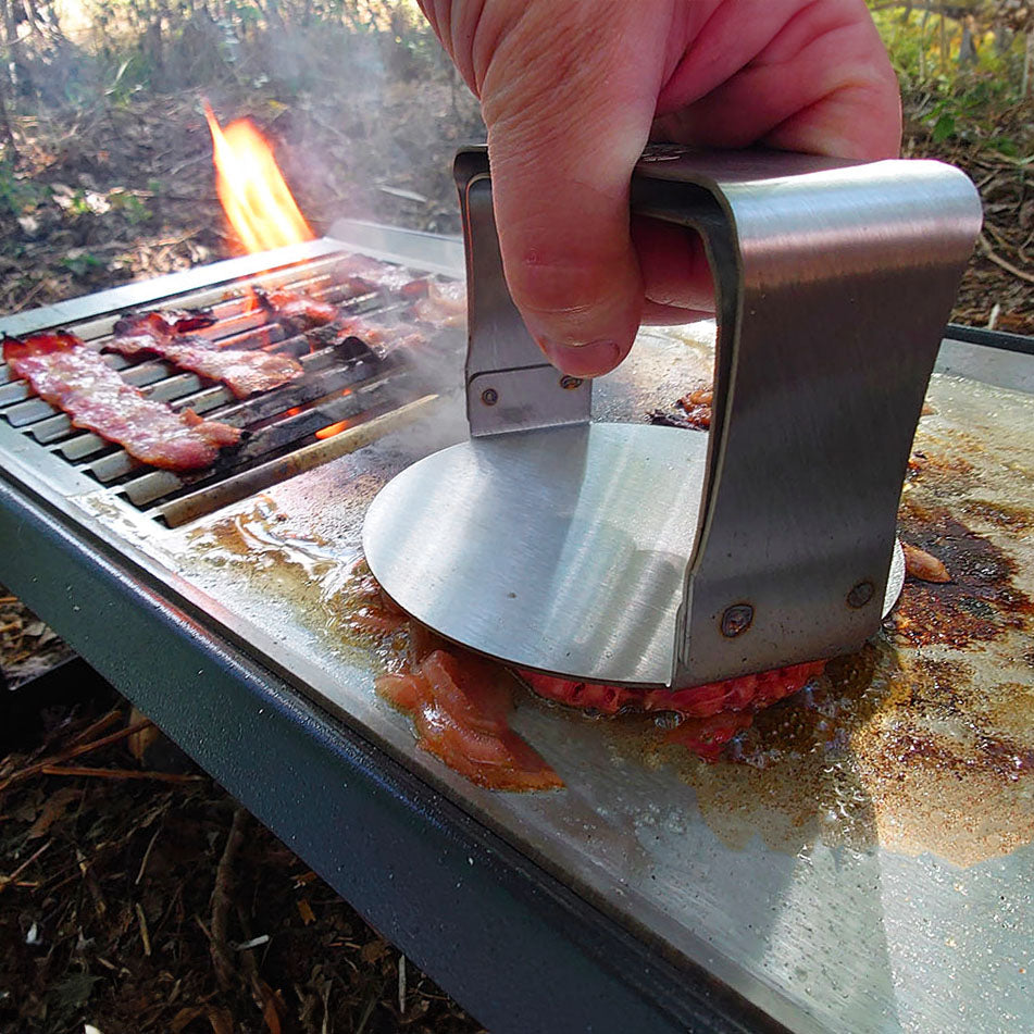 The Stainless Steel Burger Press allows you to press burgers down to ensure a flat and even patty which cooks quickly and sears evenly without sticking. It can also be used to press juices and grease from meats to assist with healthier eating. The strong and durable build allows you to exert force without fear of damage.