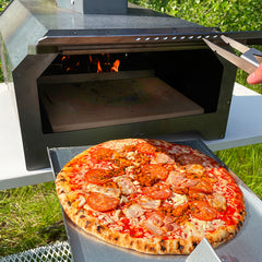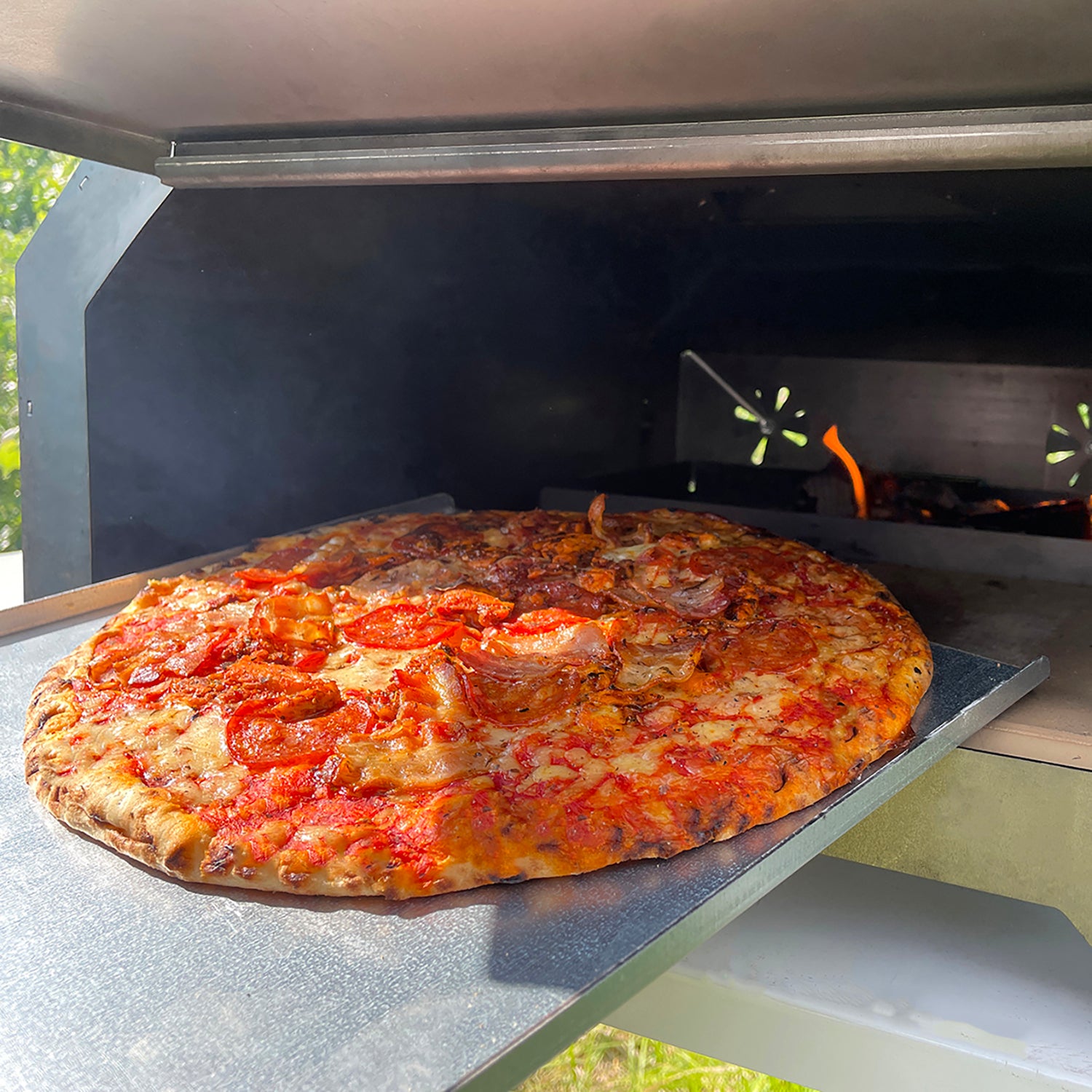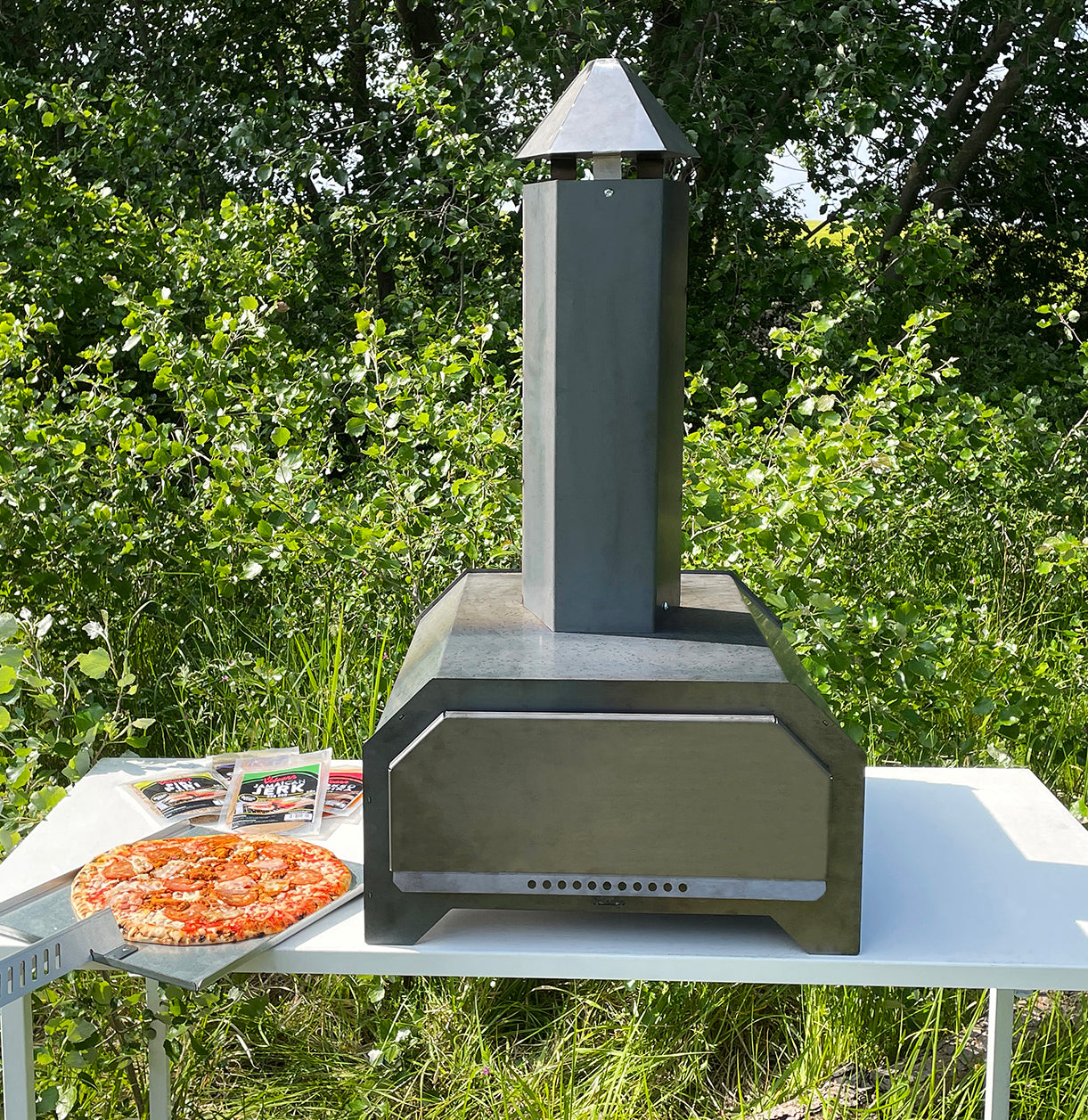 Minimal assembly is required when the pizza oven is delivered. You will simply need to add the chimney and the chimney cap on top of the main body. From here, you can load the back of the oven with wood and kindling. Start the fire going and then add your pizza to the cooking chamber. Close the door on the cook chamber. Then cook your pizza to preference, we like a nice crispy stonebaked base on ours.