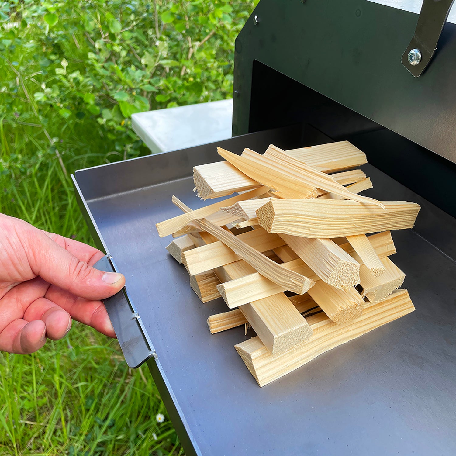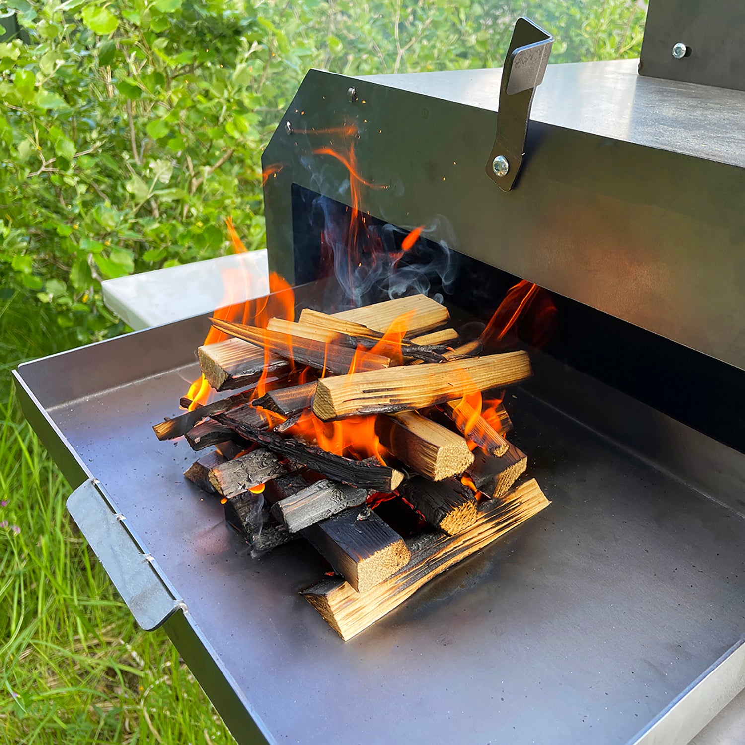 The back panel can be easily accessed whilst in use too to add extra fuel and keep the fire burning. The back door also features two air vents for controlling the temperature of the oven.