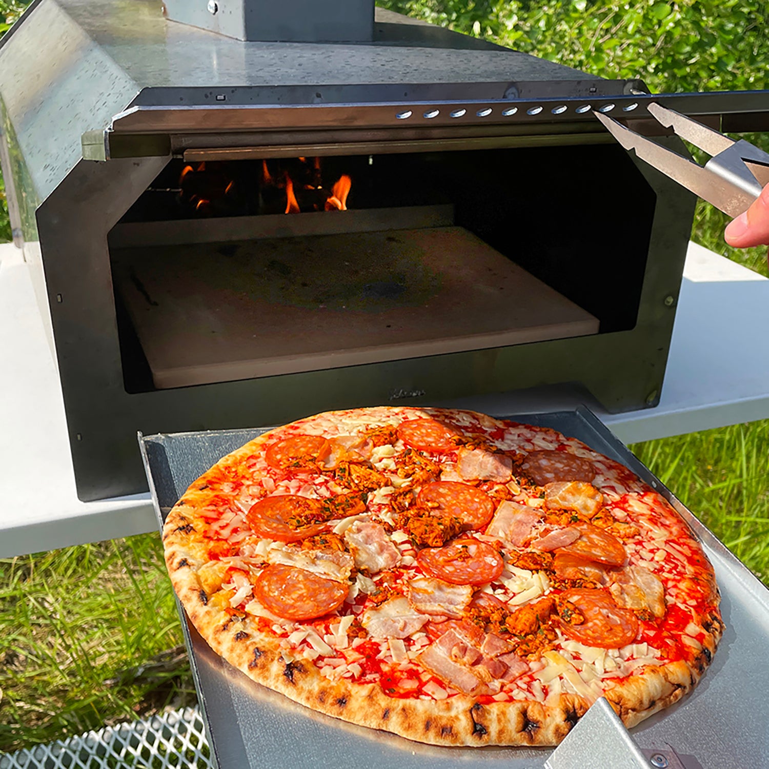 If you love stonebaked pizzas, enjoy the great outdoors and love cooking, this is the product for you. The Volcann Table Top Pizza Oven is a convenient way of cooking pizzas outside and accompanies our range of Flat Pack BBQs perfectly. This is ideal for the occasional pizza eater, who just wants to cook a Margherita on a sunny day with a couple of beers.
