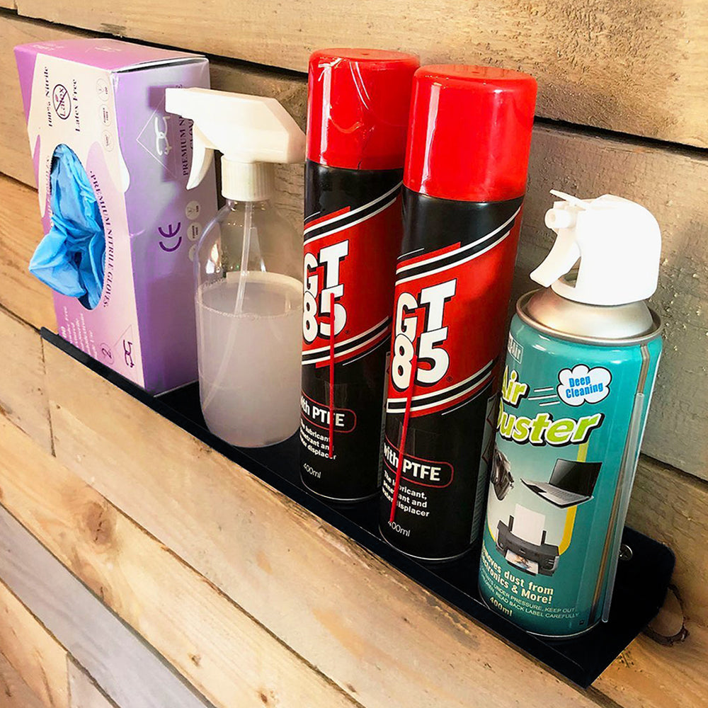 Do you keep a lot of spray cans and aerosols in your workspace? From keeping rattle cans of paint in your shed to WD40 in your workshop, storage can be a nightmare. Our Multi-purpose Wall Mount Shelf can be just what you need for storing all your aerosol cans!