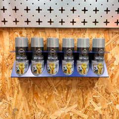 Ideal for use in the back of a van or in a workshop, this wall mounted silicone tube rack is capable of holding up to 6 spray cans or aerosols. The holes in the central part of the unit have been designed to allow you to see the can and the label to know exactly what's in your rack at any one time. The slots are compatible with most leading brands of spray cans and aerosols.