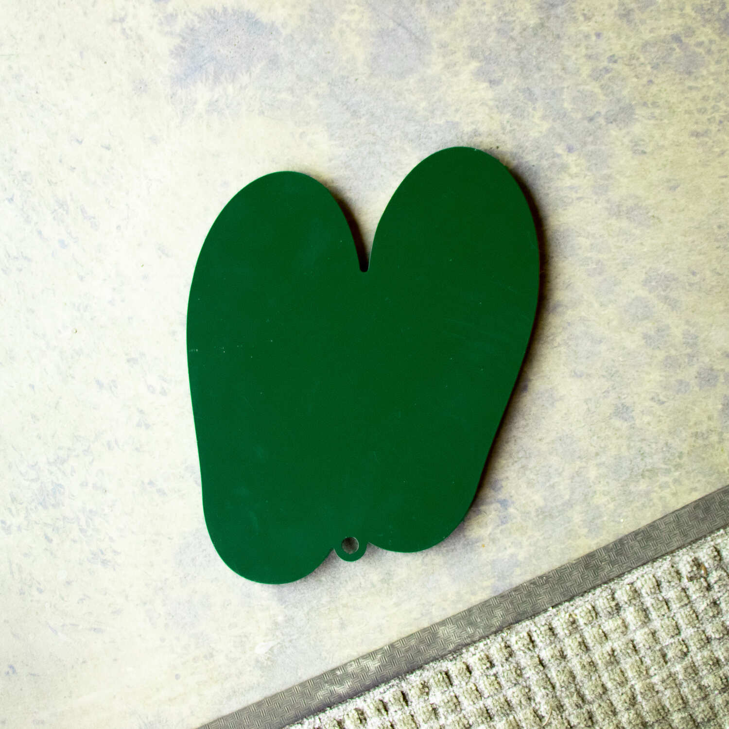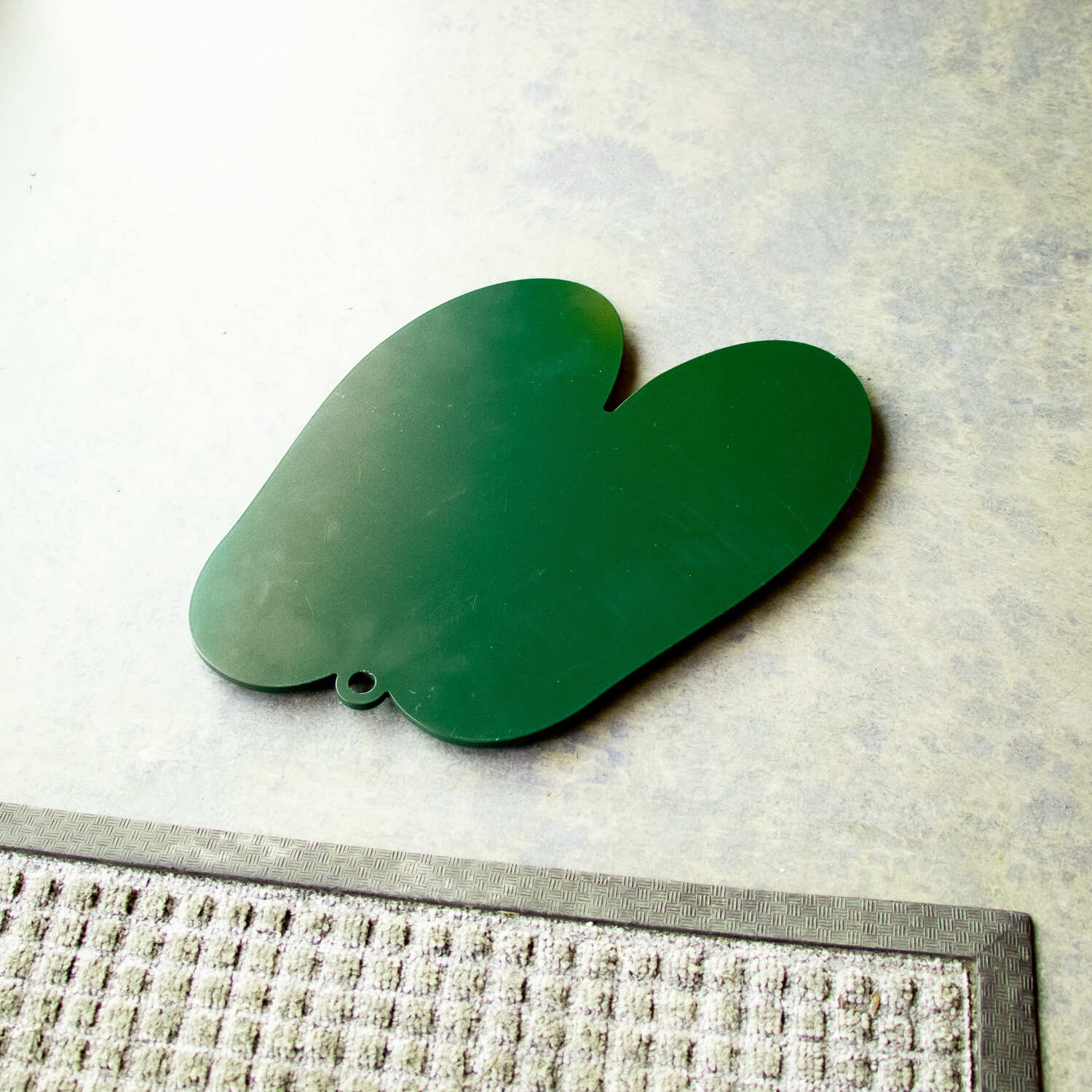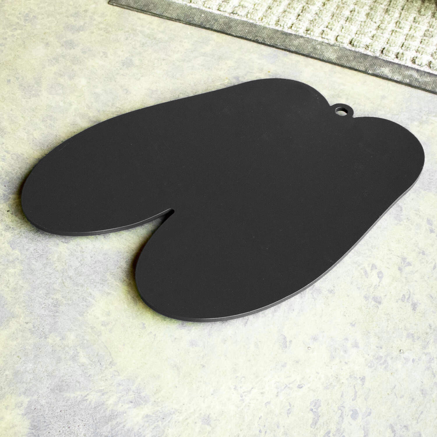 On the underside, the mat comes with six rubber feet, which you can position yourself depending on how you want it to grip the floor. These help prevent sliding and also raise the base slightly, allowing airflow beneath. A small hole at the top of the mat makes it easy to hang on a hook when not in use.